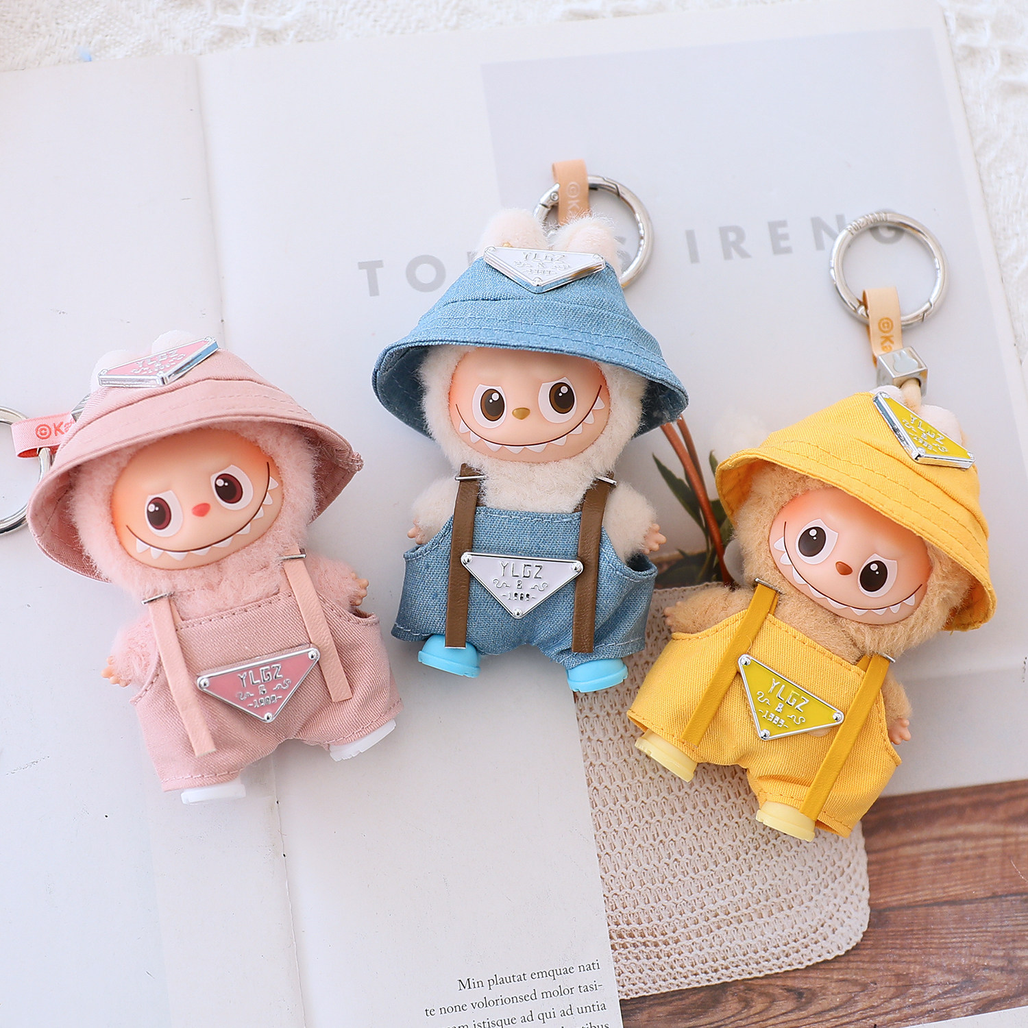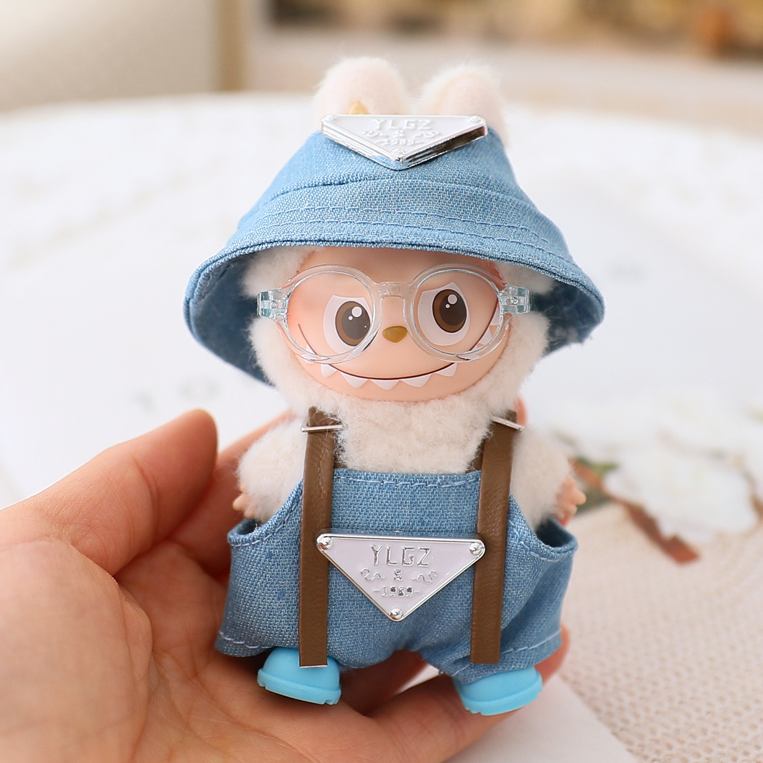 4.0迷你版拉布布娃衣心底密码Labubu四代渔夫帽背带裤套装眼镜鞋