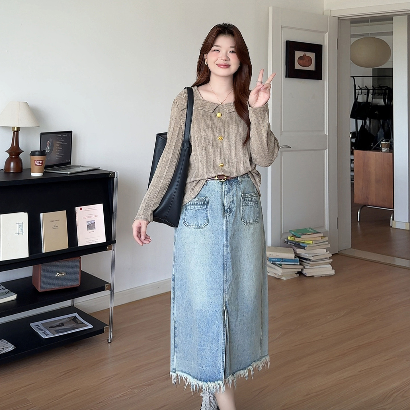 微胖的喵喵 大码女装mm春装穿搭显瘦打底衫通勤针织长袖上衣 8639
