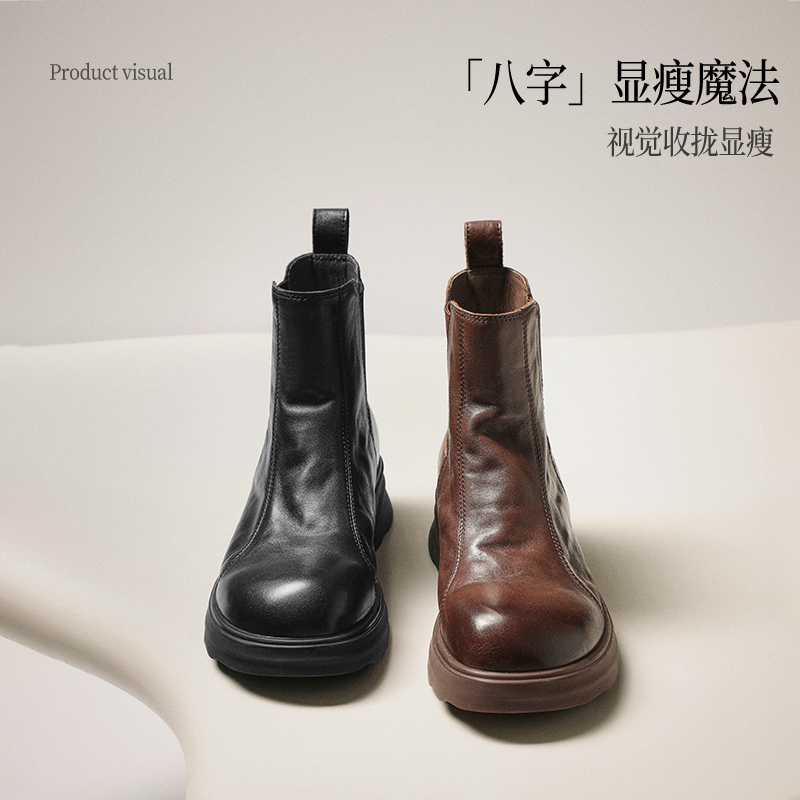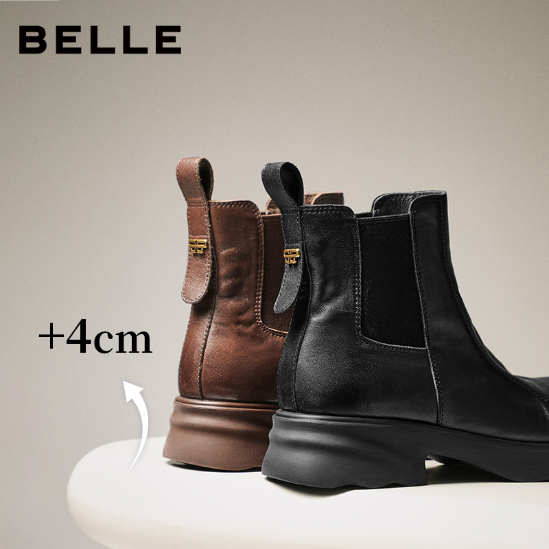 【双11预售】百丽女靴子真皮显瘦褶皱切尔西靴冬新款休闲增高短靴