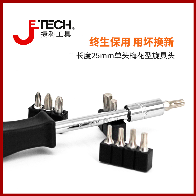 jetech捷科工具25mm单头旋具头小批头套装手柄T型批头内六角十字