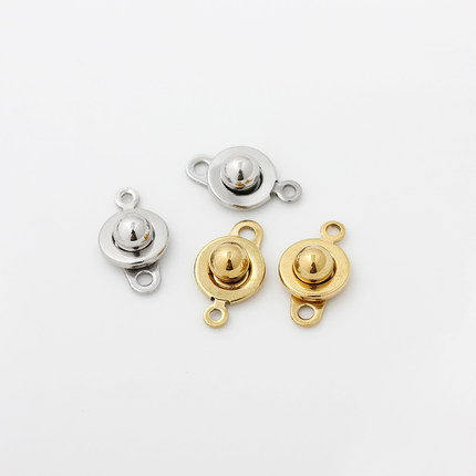 不褪色304钛钢不锈钢按扣水晶珍珠接头扣项链扣头手工diy饰品配件