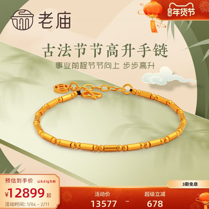 新品老庙古法竹节足金手链
