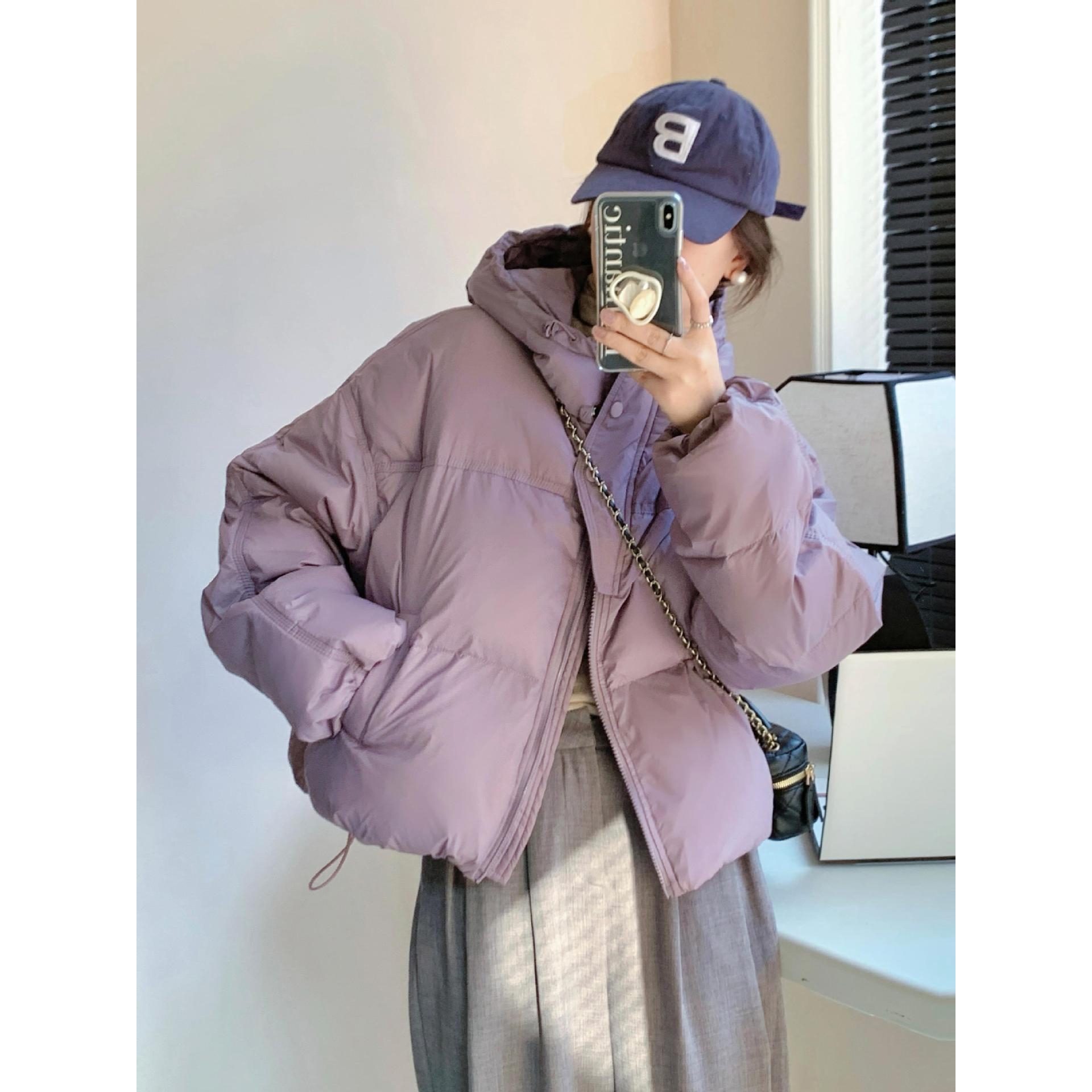 白鸭绒2024韩版连帽新款高腰羽绒服女短款面包服宽松小个子外套潮
