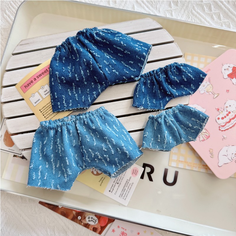 现货棉花娃娃娃衣10cm15cm20cm潮流酷拽狂野牛仔裤磨边裤子卫衣服