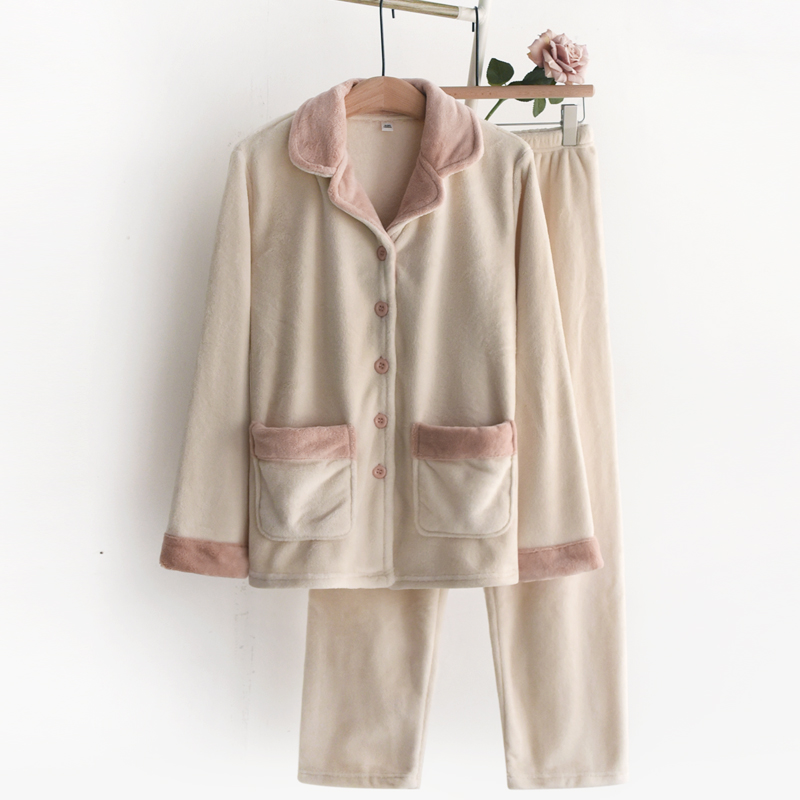 简约大码睡衣男女秋冬季珊瑚绒加厚保暖加绒长袖情侣家居服套装