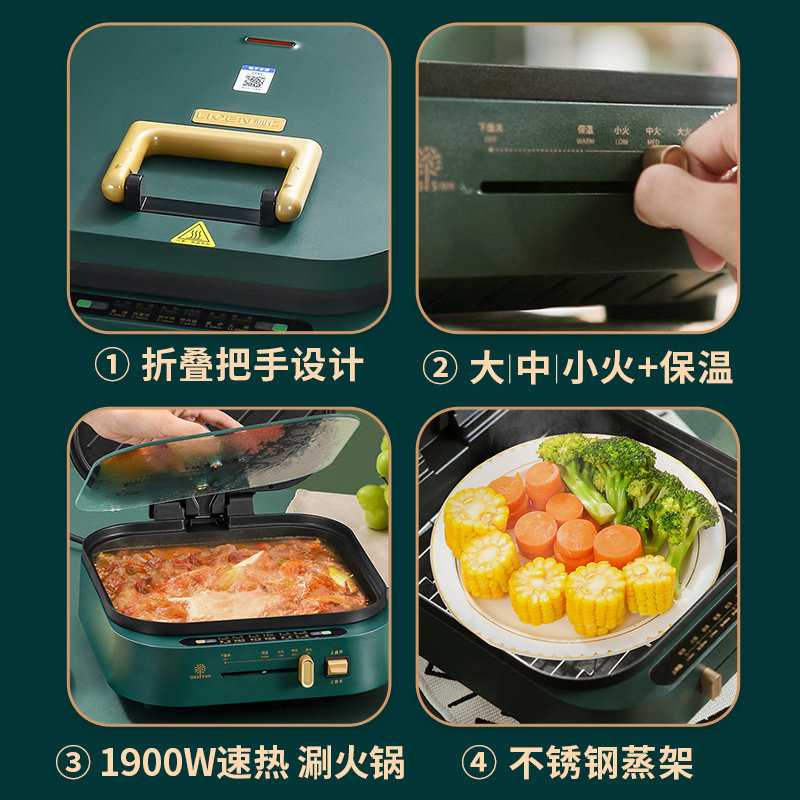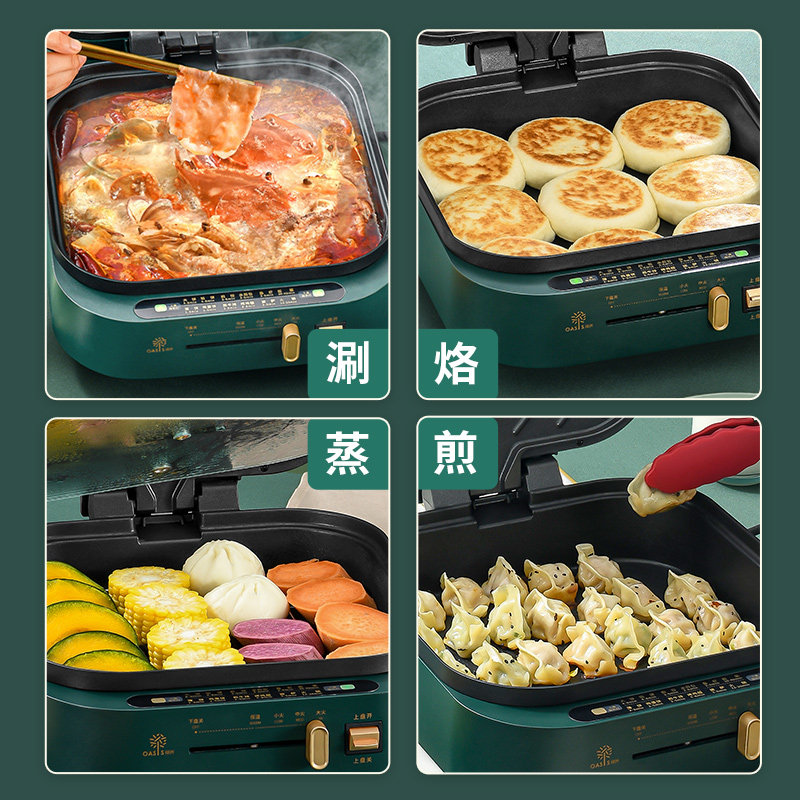 利仁电饼铛双面加热家用加大加深多功能涮烤一体电煎锅火锅