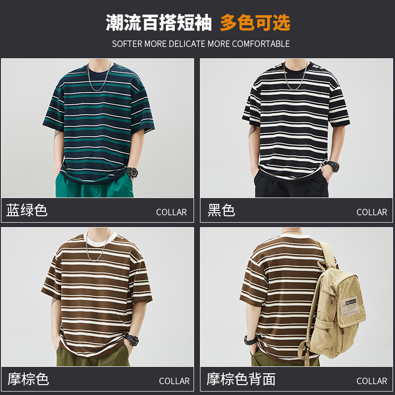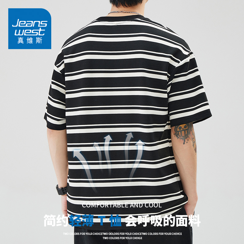 KZH真维斯港风短袖T恤男夏季新款宽松百搭打底衫潮流条纹休闲上衣