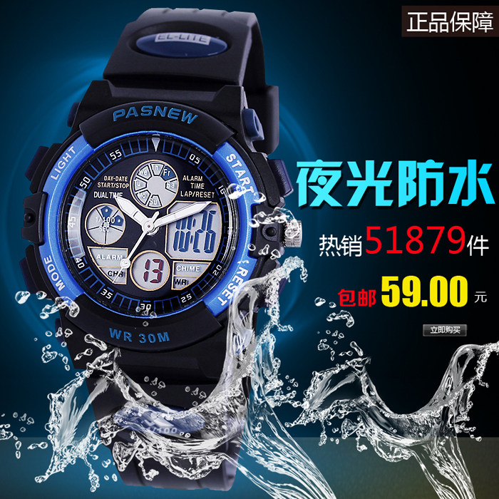 百圣牛儿童手表男孩防水夜光表运动表多功能电子表儿童表学生表