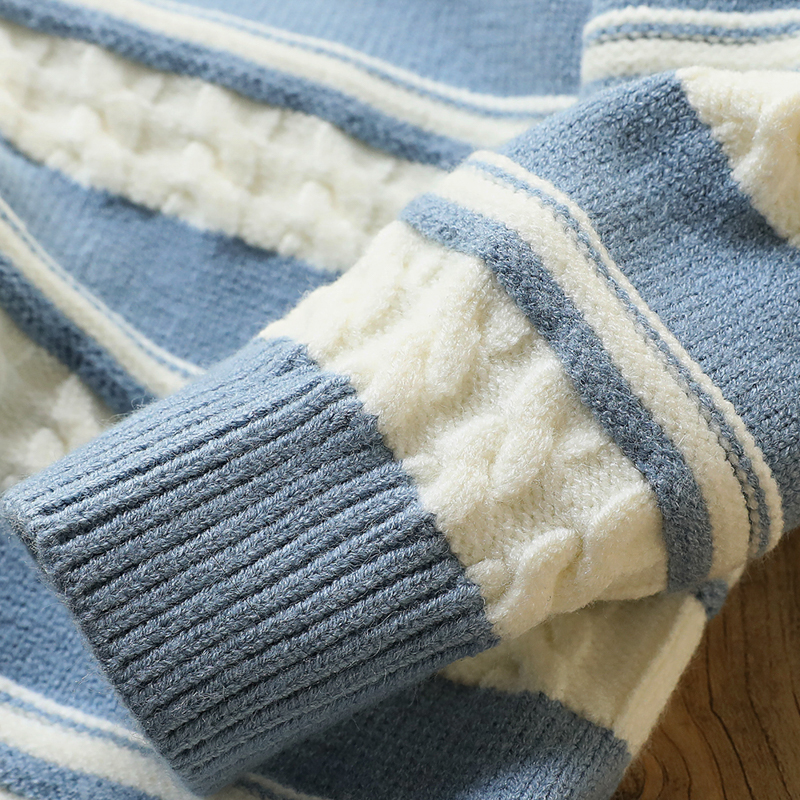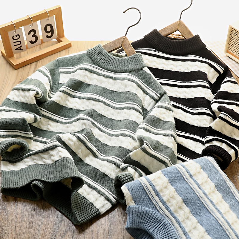 男童毛衣秋冬款2025新款儿童内搭拼色条衣服中大童男孩圆领毛线衣