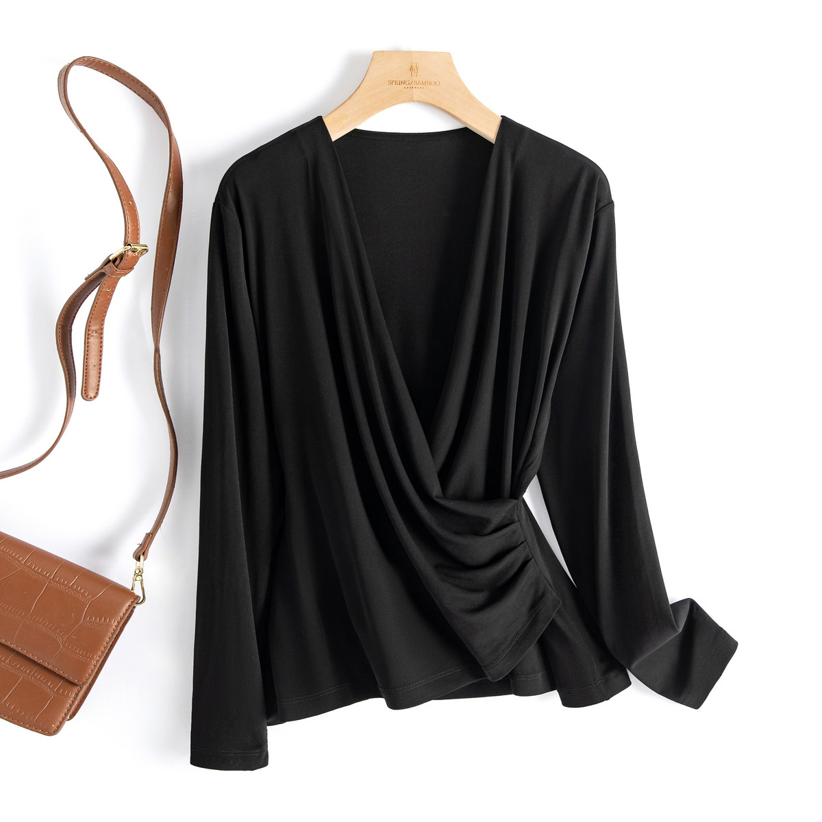 春竹2026春夏新款透气舒适100%桑蚕丝百搭衬衫圆领显瘦真丝上衣女