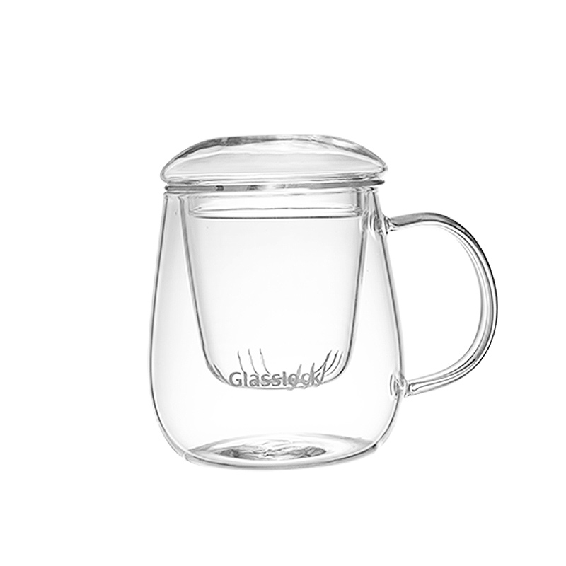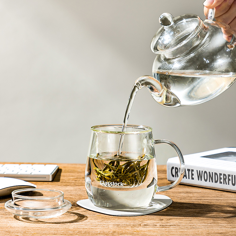 Glasslock盖朗玻璃水杯花茶杯家用茶水分离办公室过滤泡茶带把手