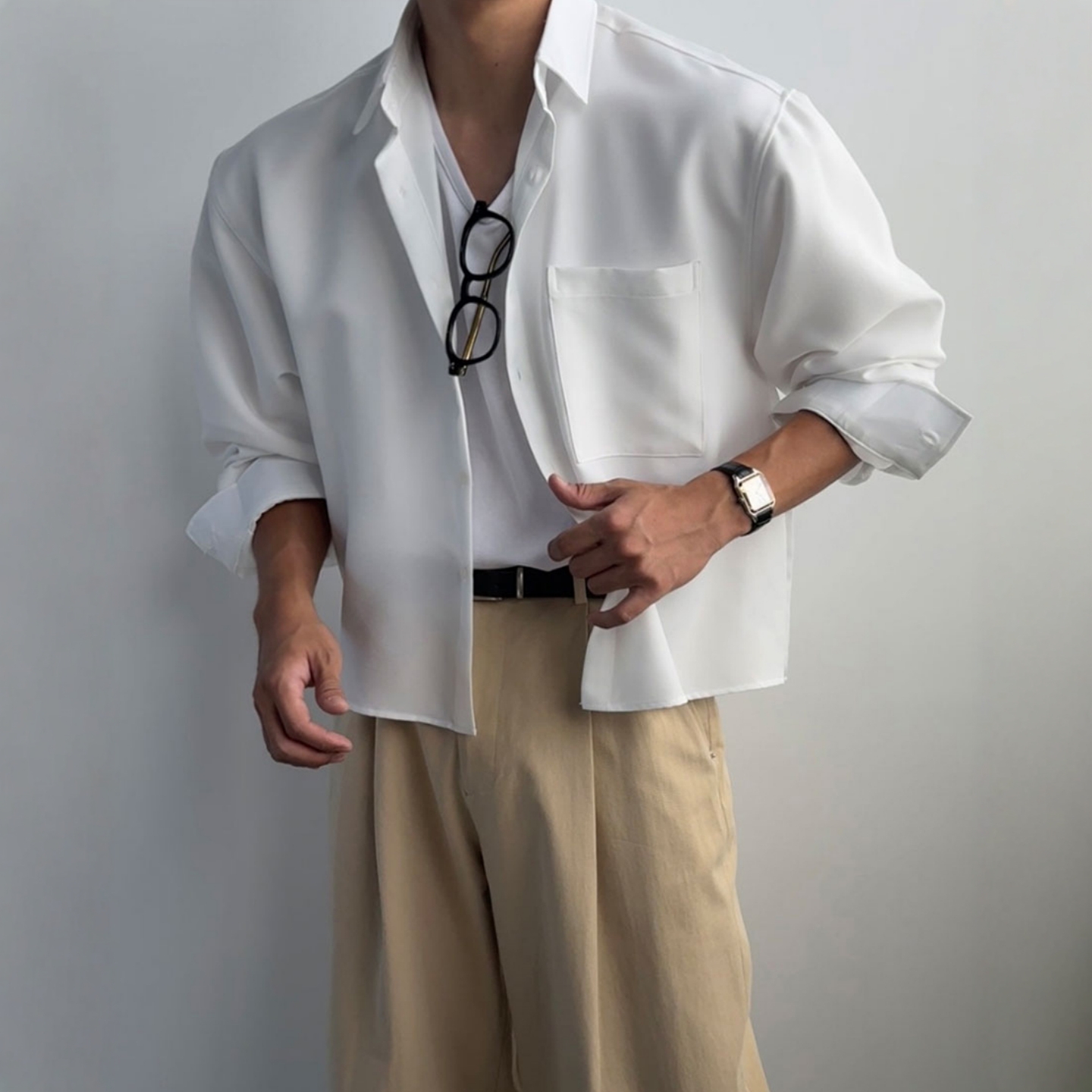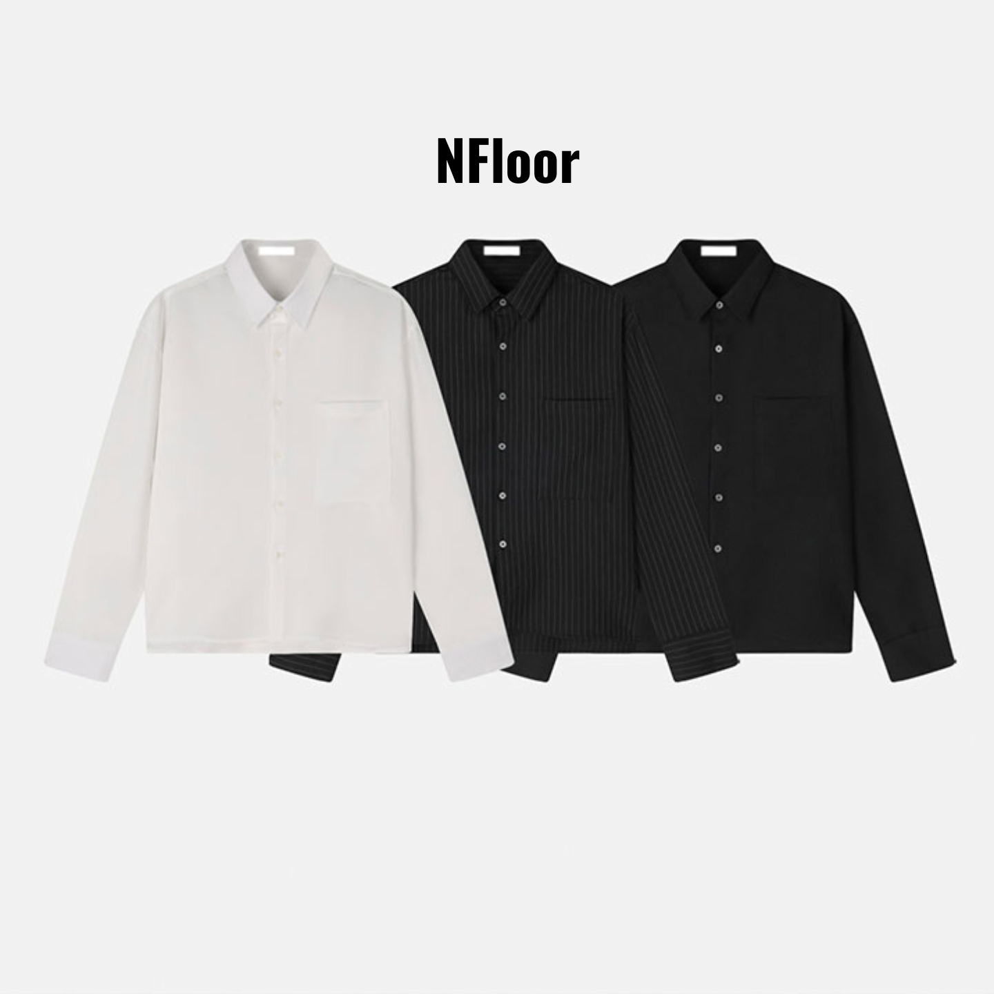 韩国男装代购直播N.FLOOR设计师短款时尚单口袋高品宽松长袖衬衫