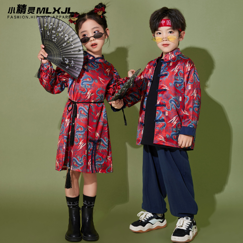 元旦儿童喜庆演出服男女童汉服套装中小学生啦啦队合唱班服表演服