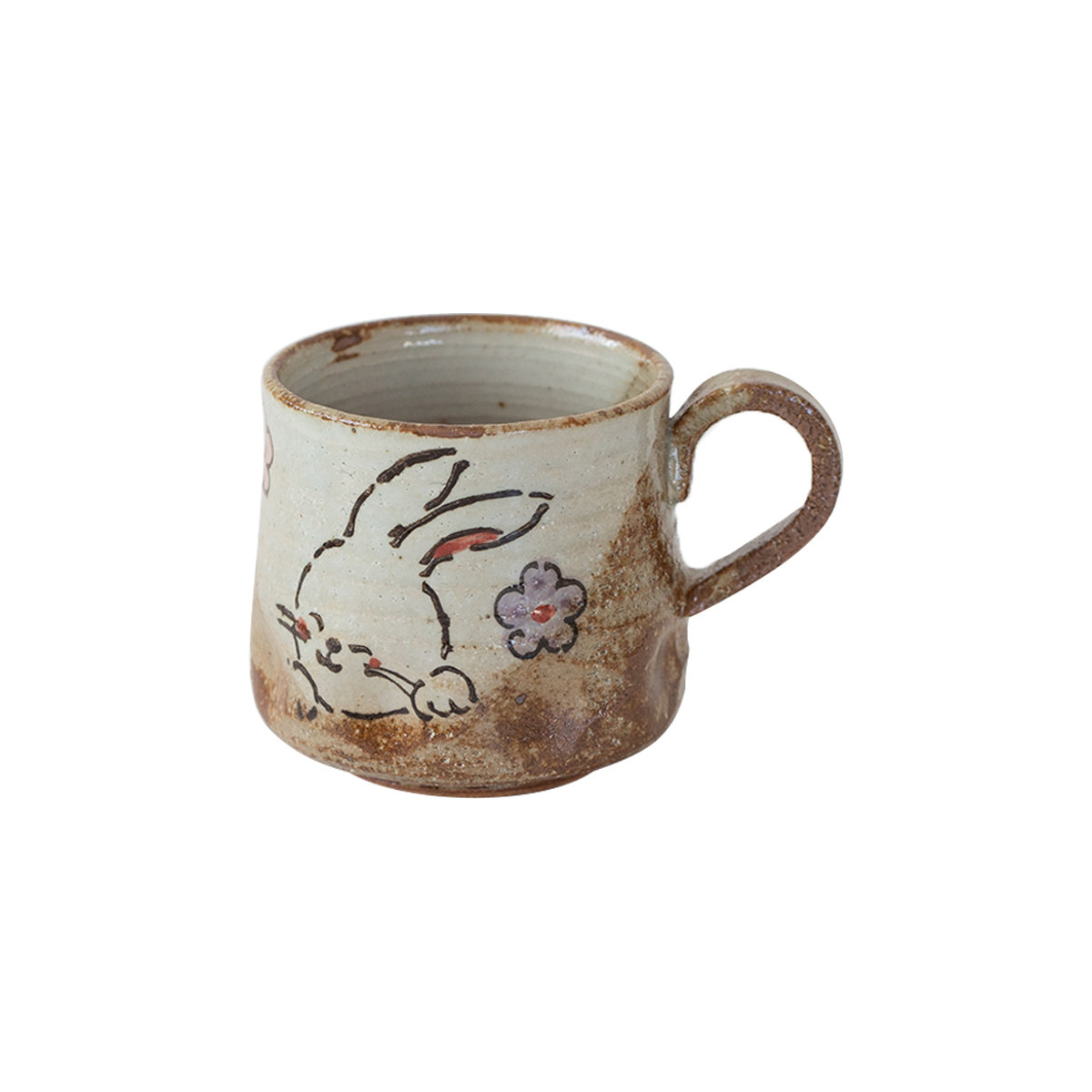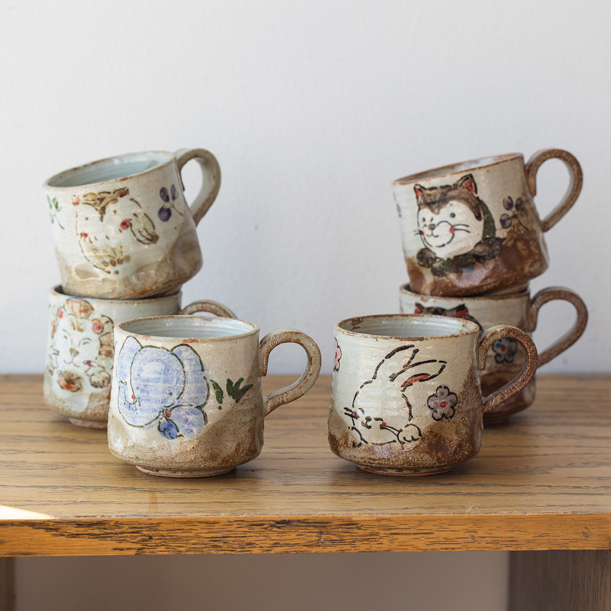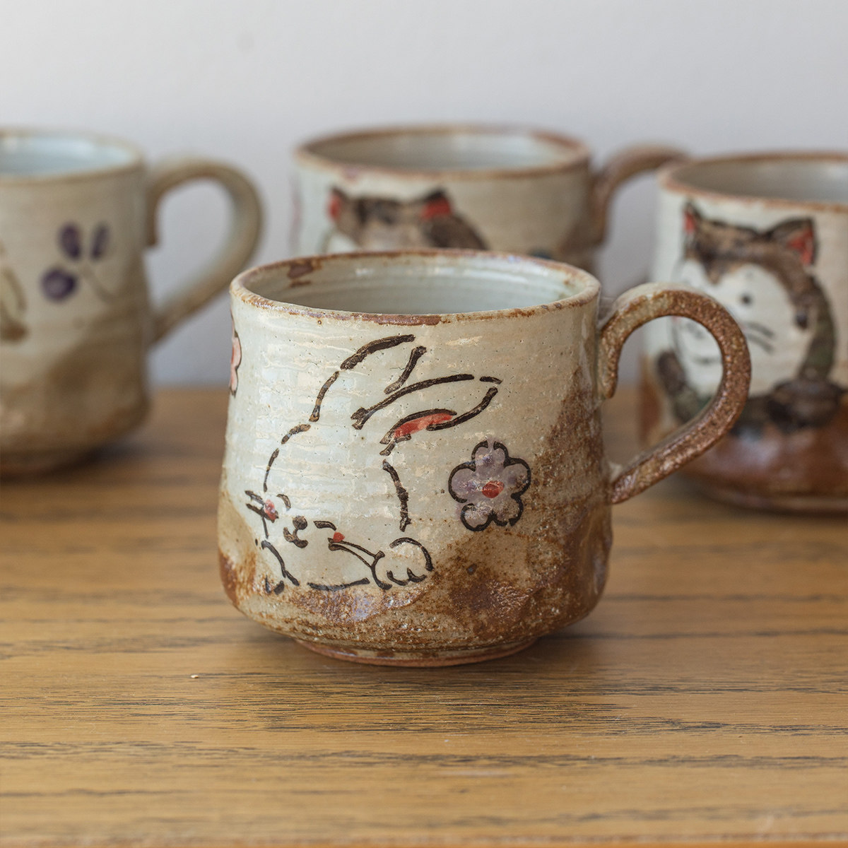 日本进口濑户烧粗陶手绘可爱兔子马克杯日式咖啡杯茶杯猫咪水杯子
