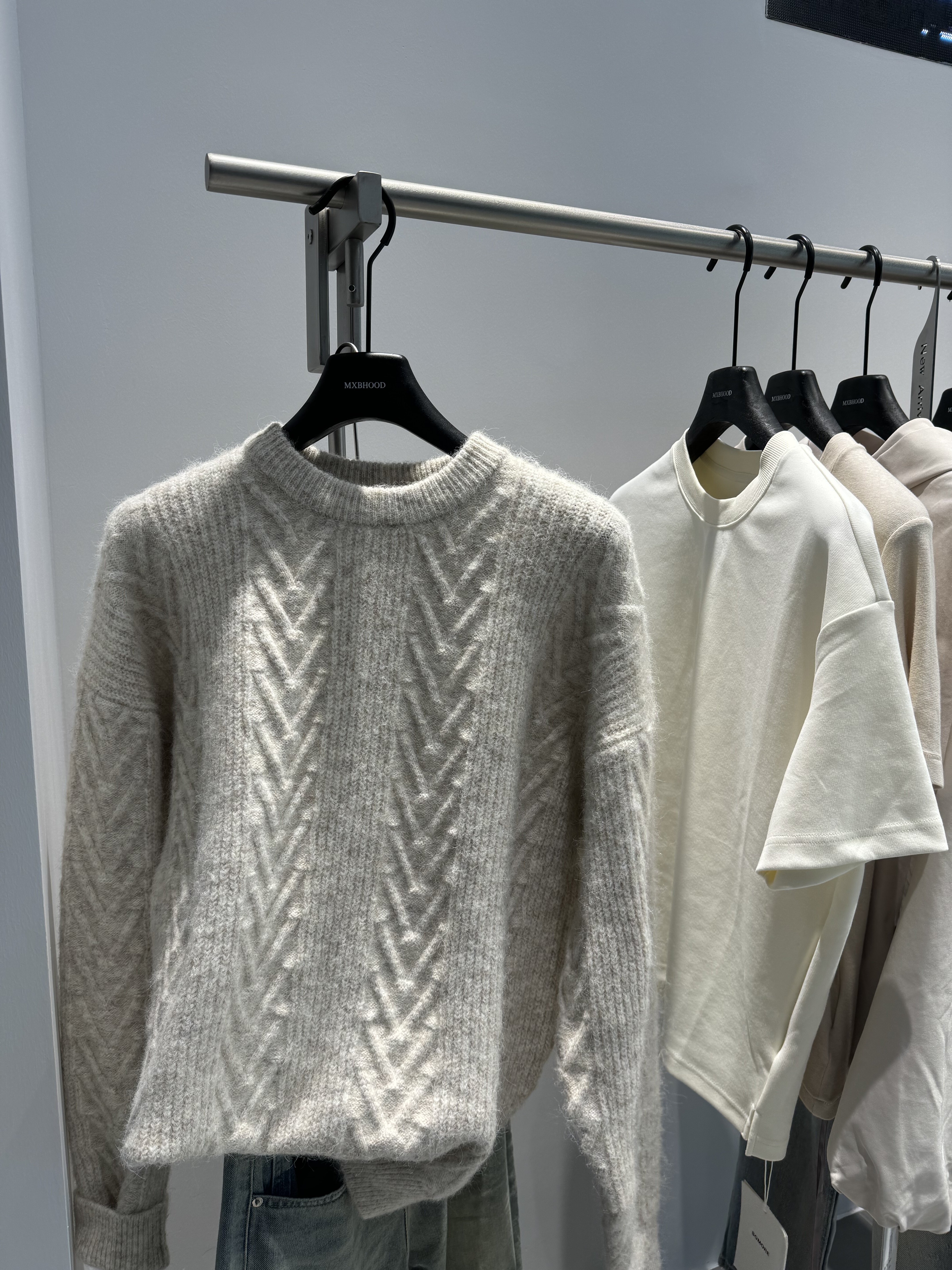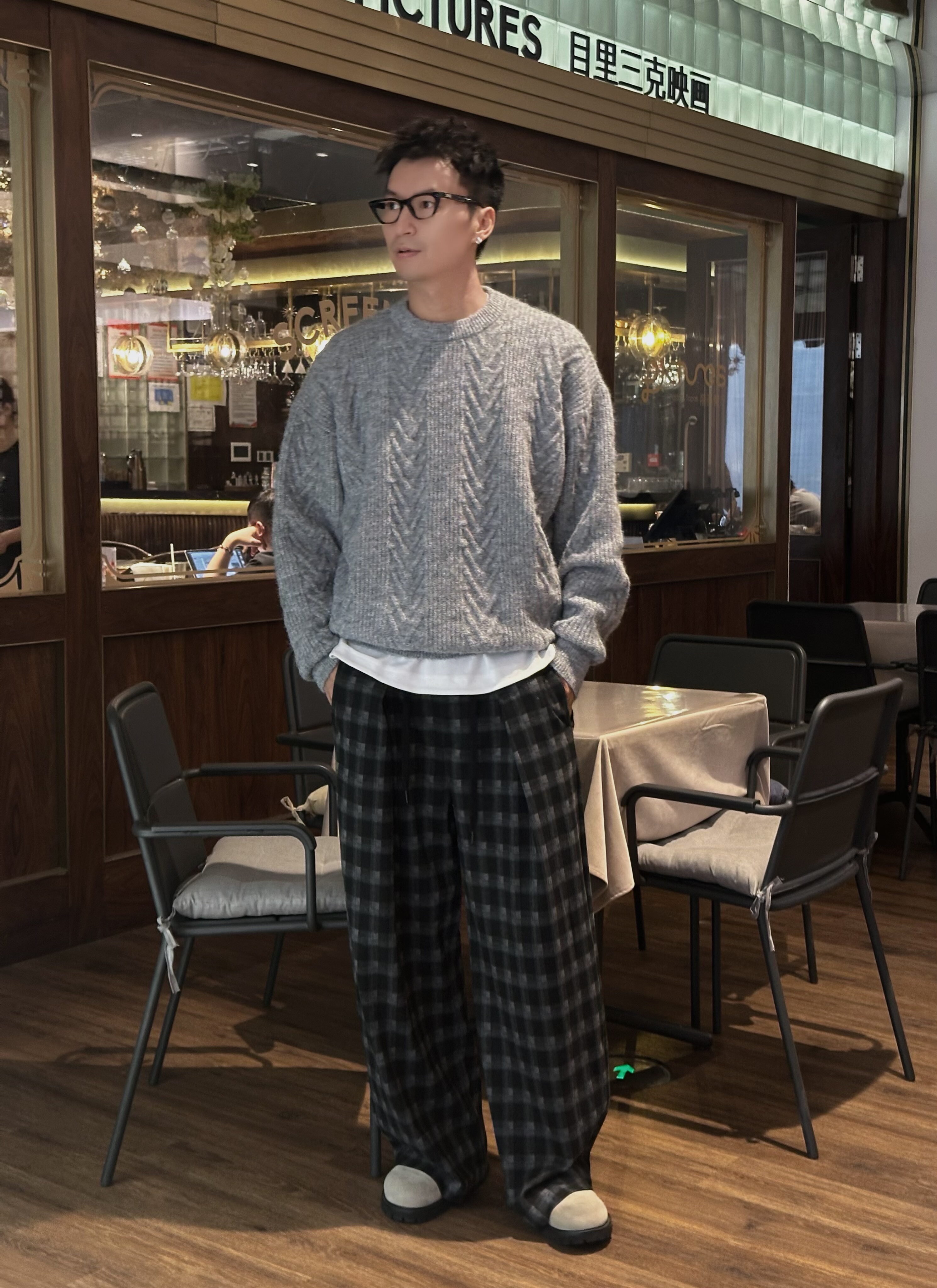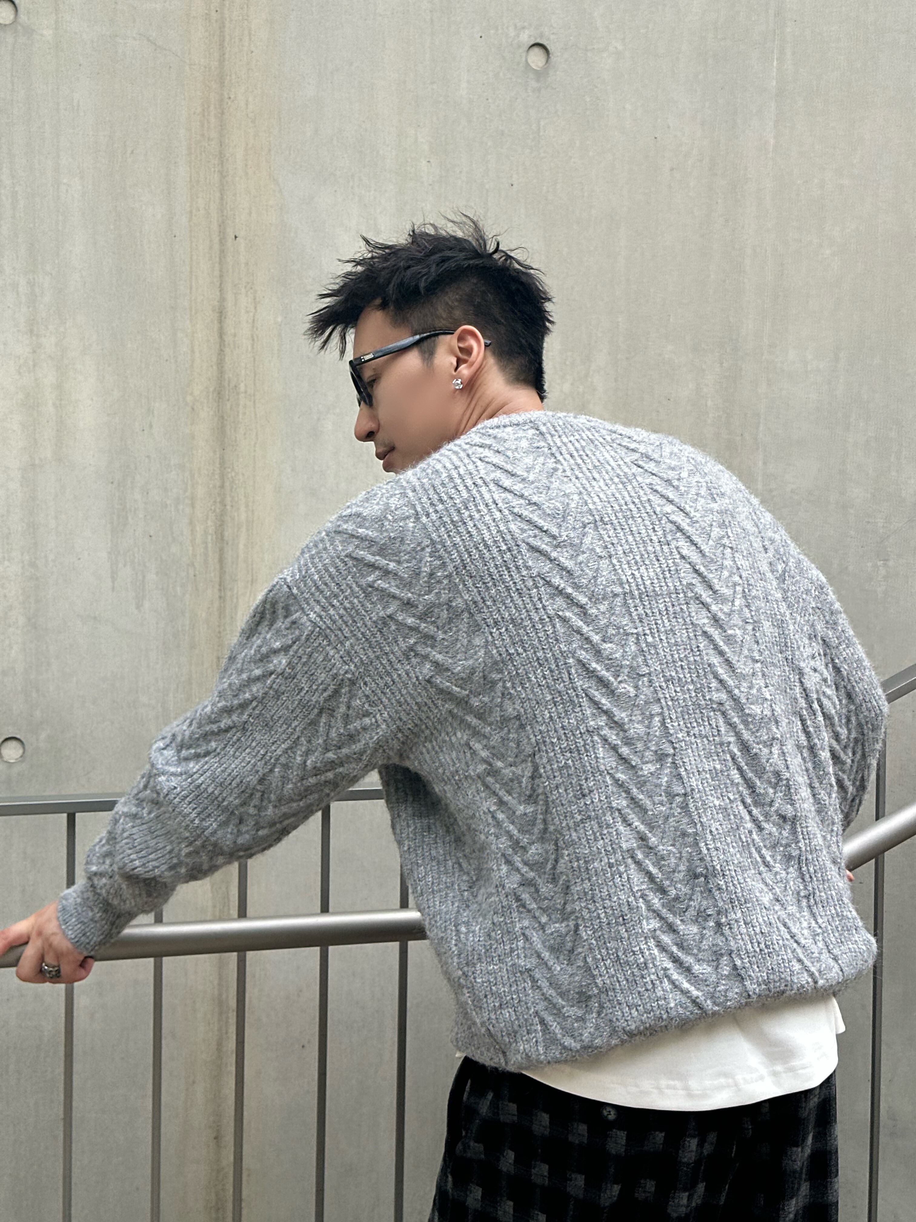阿信秋季新款男士圆领麻花编织宽松休闲长袖套头针织衫毛衣