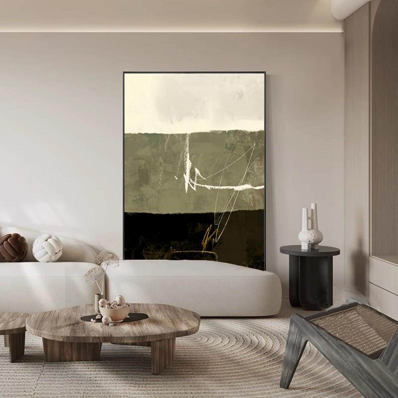 侘寂风抽象极简大幅客厅装饰画绿色肌理感咖啡厅酒店挂画玄关壁画