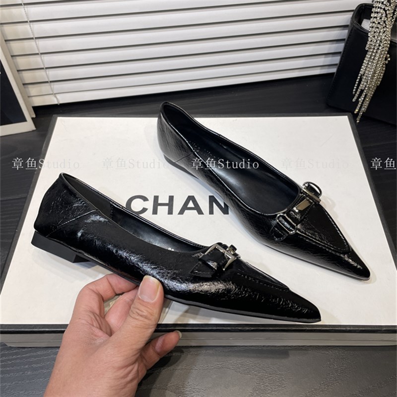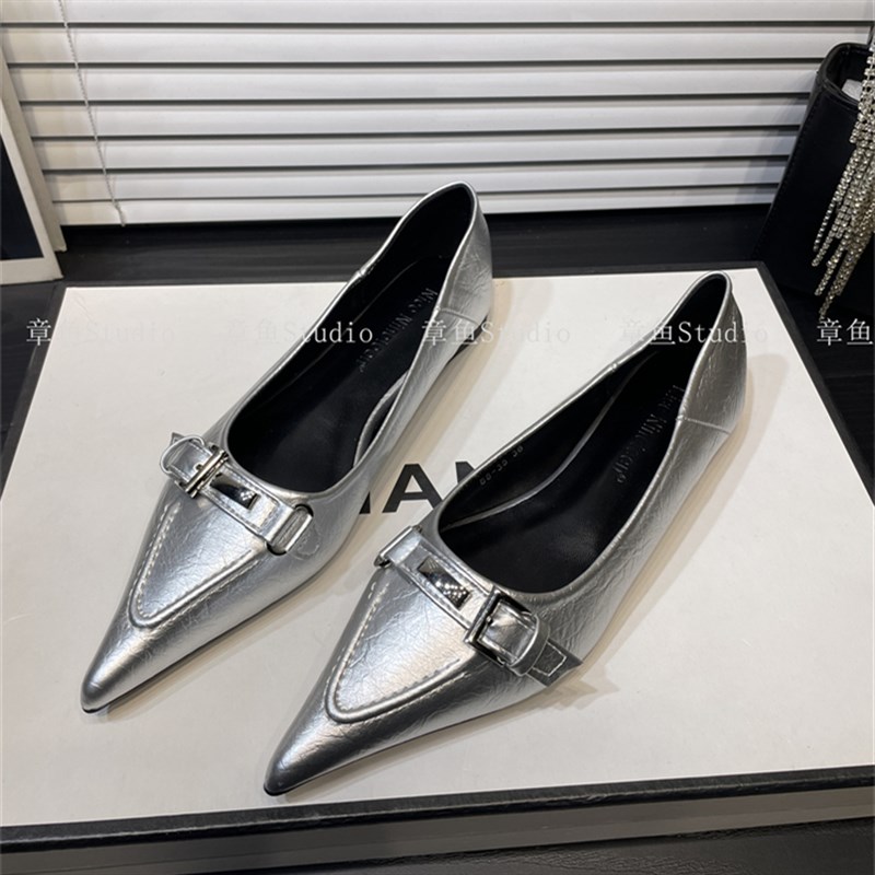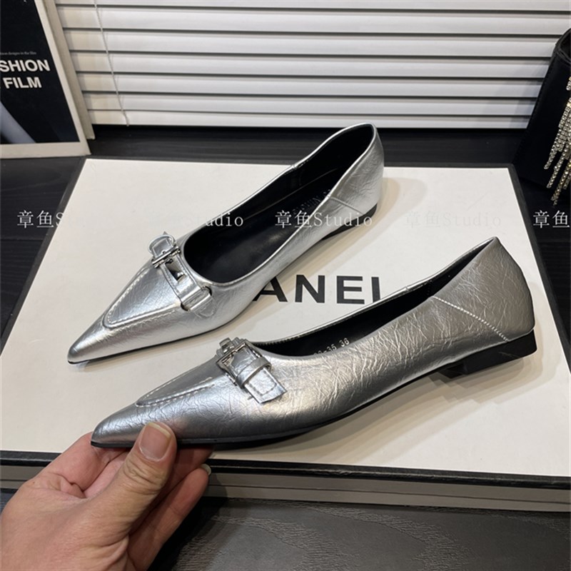 法式软底尖头浅口单鞋女2025年新款平底鞋一脚蹬舒适低跟小皮鞋女