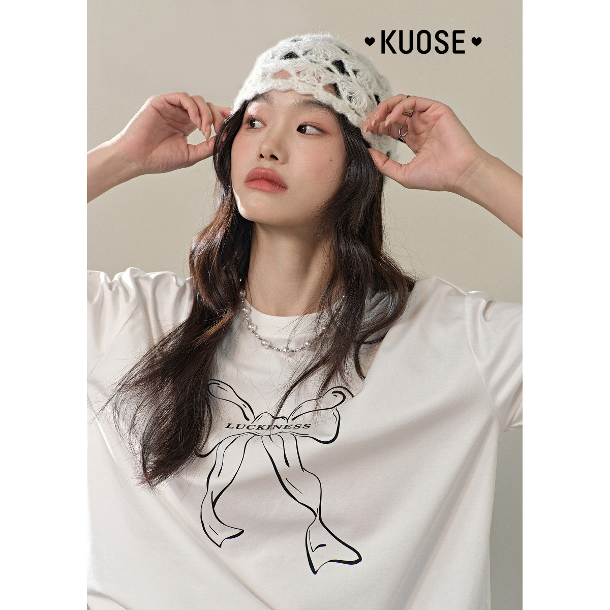 阔色白色蝴蝶结字母印花T恤