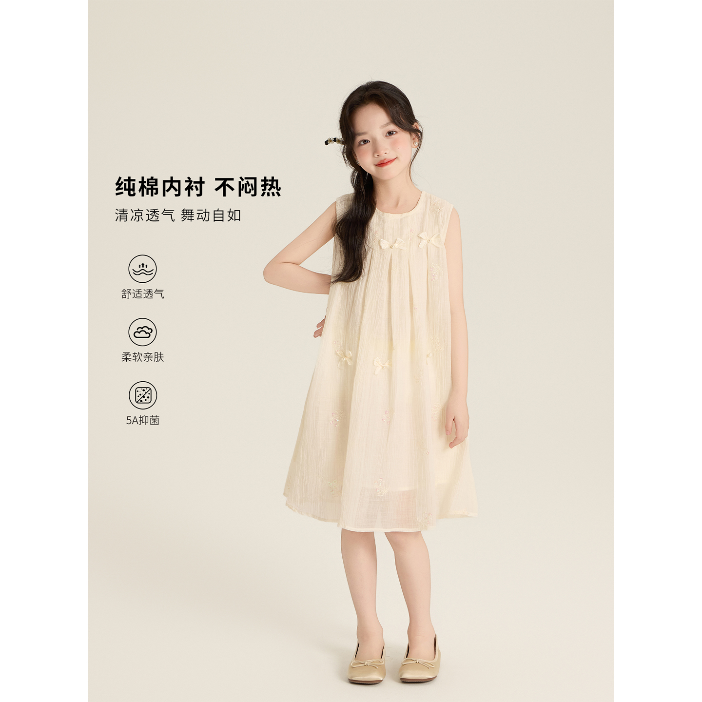 Amybaby女童连衣裙夏季2025新款甜美清凉洋气蝴蝶结无袖背心裙