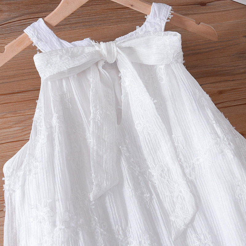 亲子装茶歇挂脖无袖女童连衣裙夏季新款法式绝美刺绣花朵白色裙子