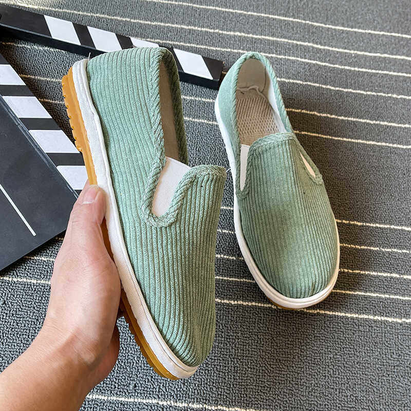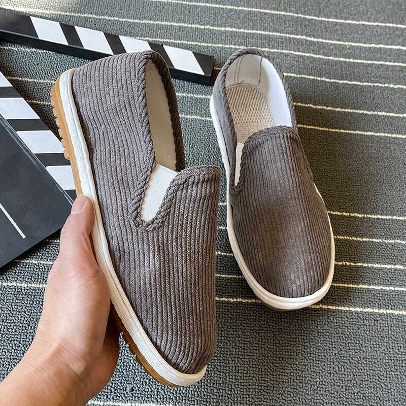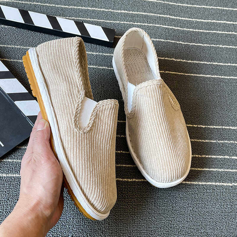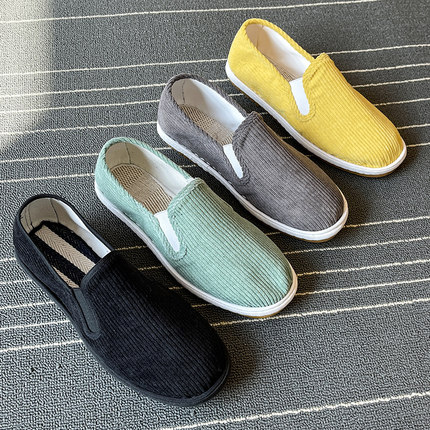 春夏季中国风休闲老北京布鞋男懒人一脚蹬透气平跟灯芯绒低帮韩版