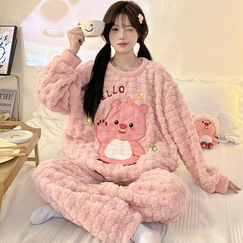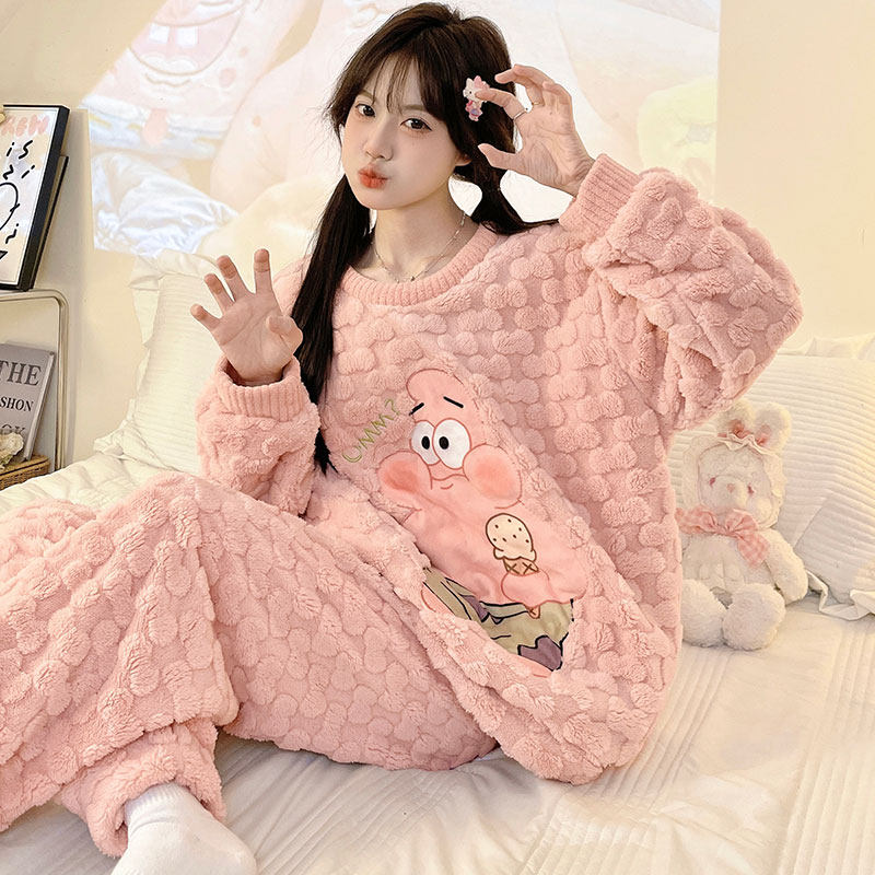 睡衣女款冬季加绒加厚珊瑚绒套装