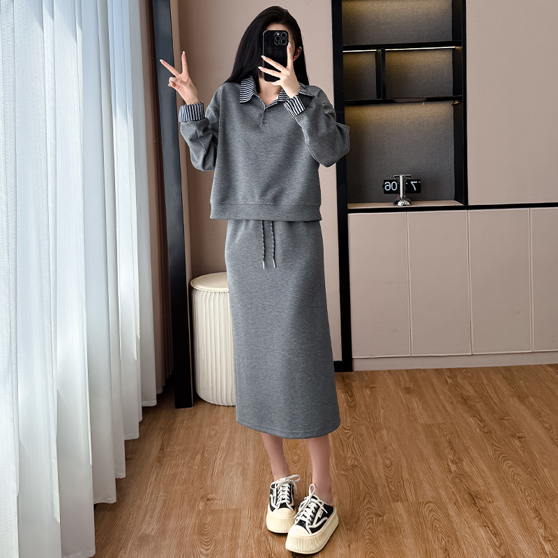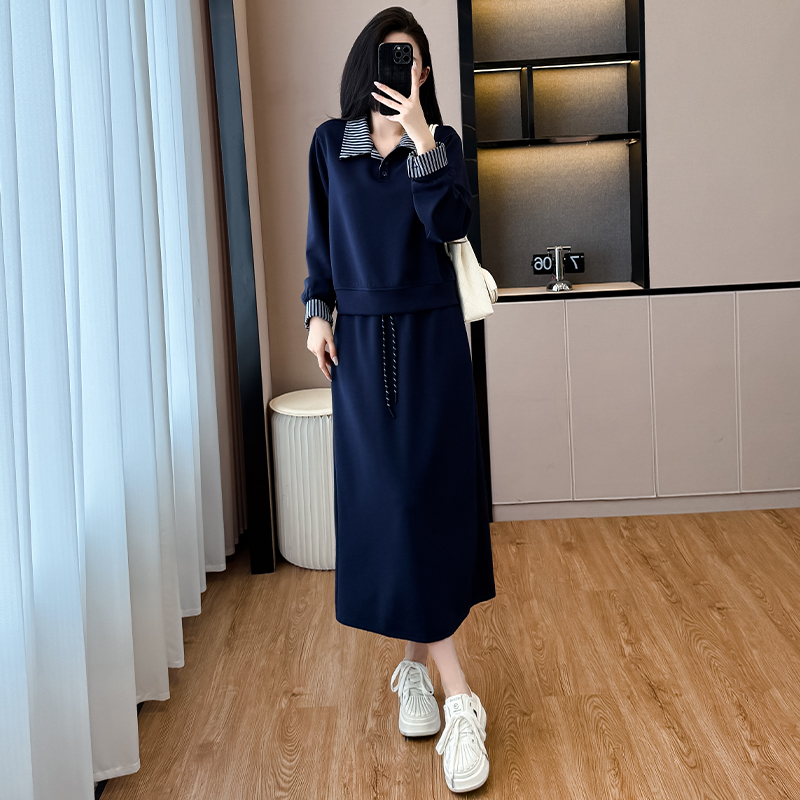 韩系大码减龄休闲运动套装裙女2025秋冬宽松卫衣裙子百搭两件套裙