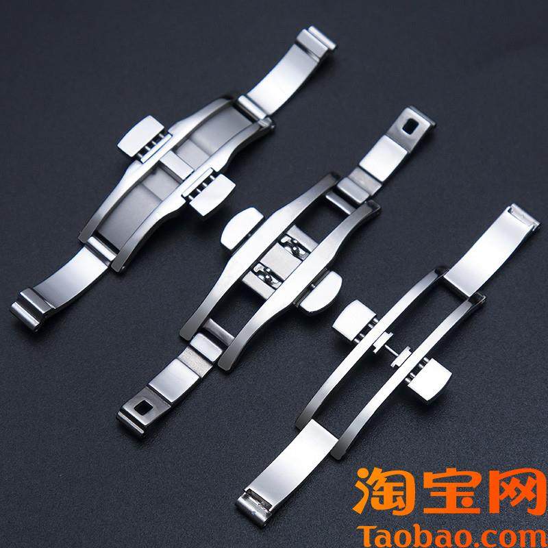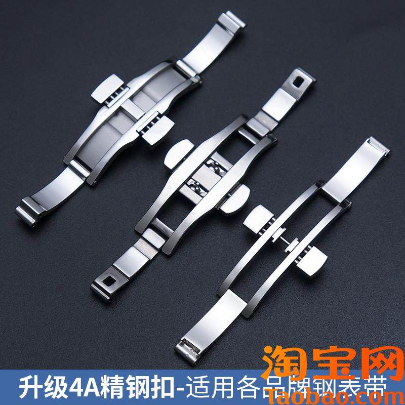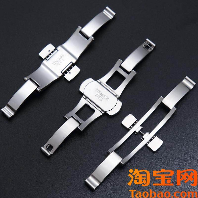 适用浪琴蝴蝶扣配件不锈钢天梭美度阿玛尼表扣通用双X按钢带卡扣