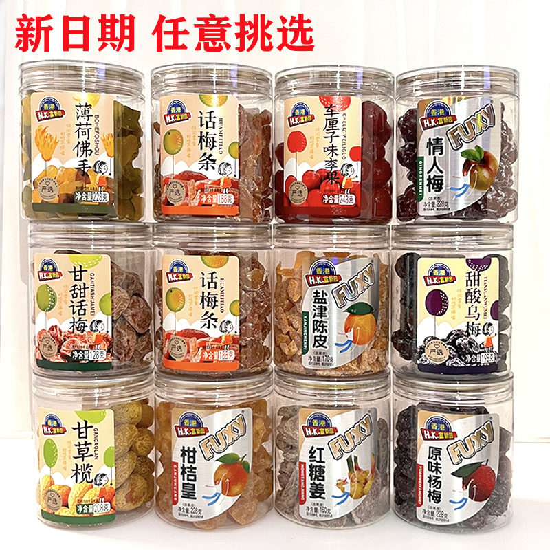 香港富新园果干凉果类蜂蜜陈皮杨梅盐津提子车厘子话梅条情人梅