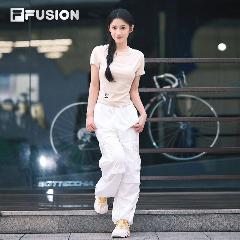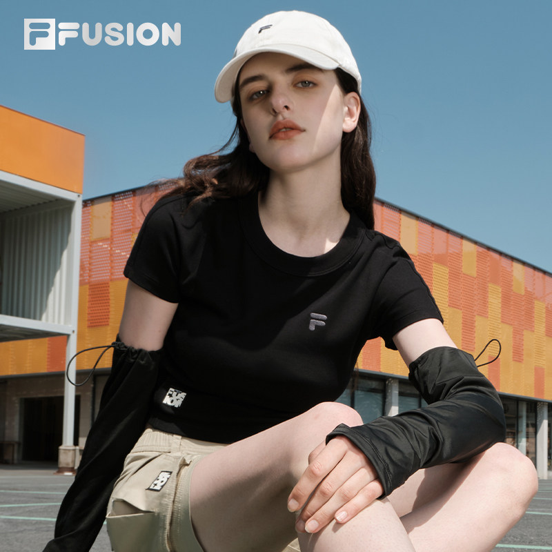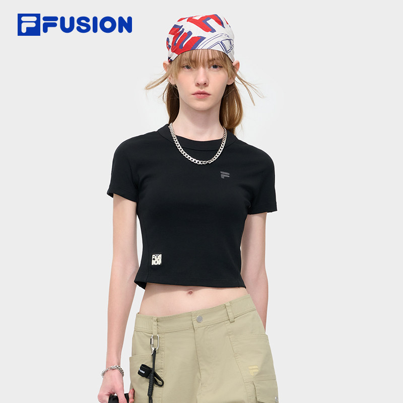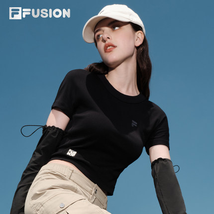 FILA FUSION斐乐潮牌女短袖夏季休闲运动内搭修身显瘦纯色短款T恤