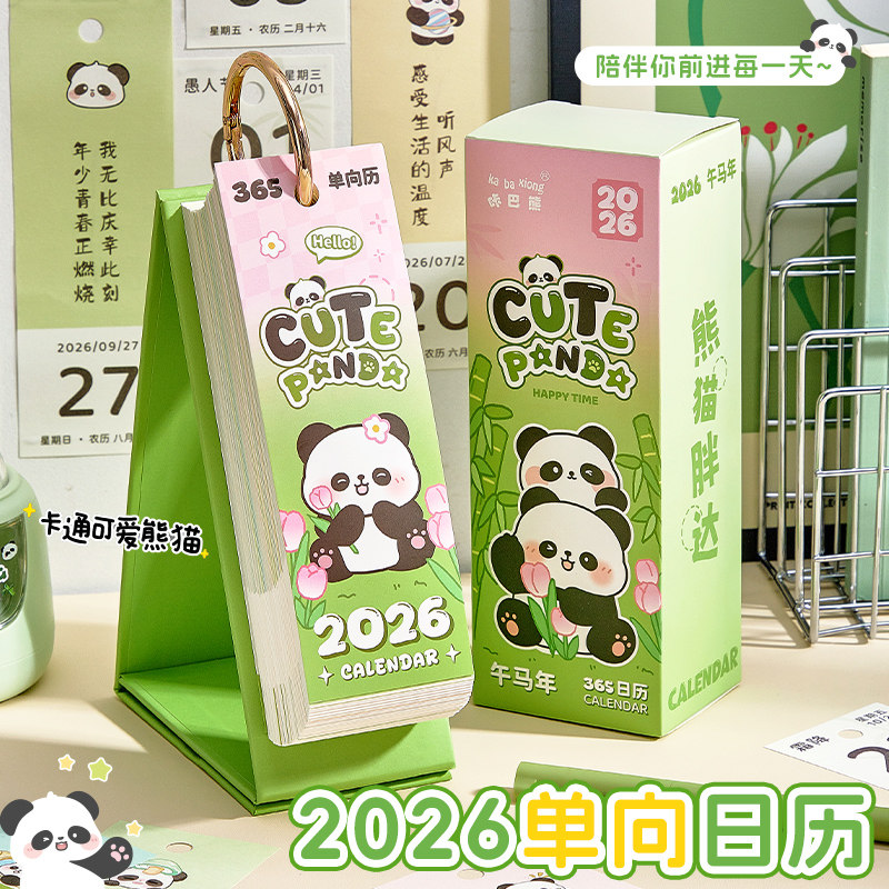 熊猫日历2026年新款治愈解压台历2025桌面摆件创意趣味卡通可爱翻页高考365天倒计时手撕打卡记事本新年礼物