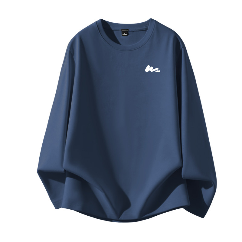 GV真维斯纯棉长袖T恤男款春秋重磅圆领上衣男士宽松藏青色打底衫A