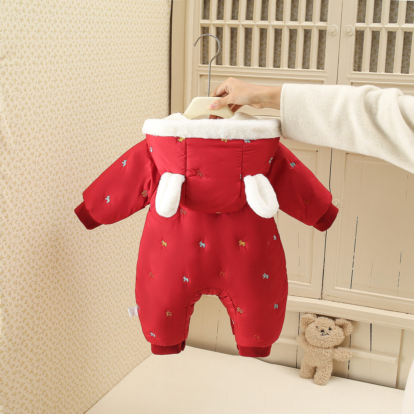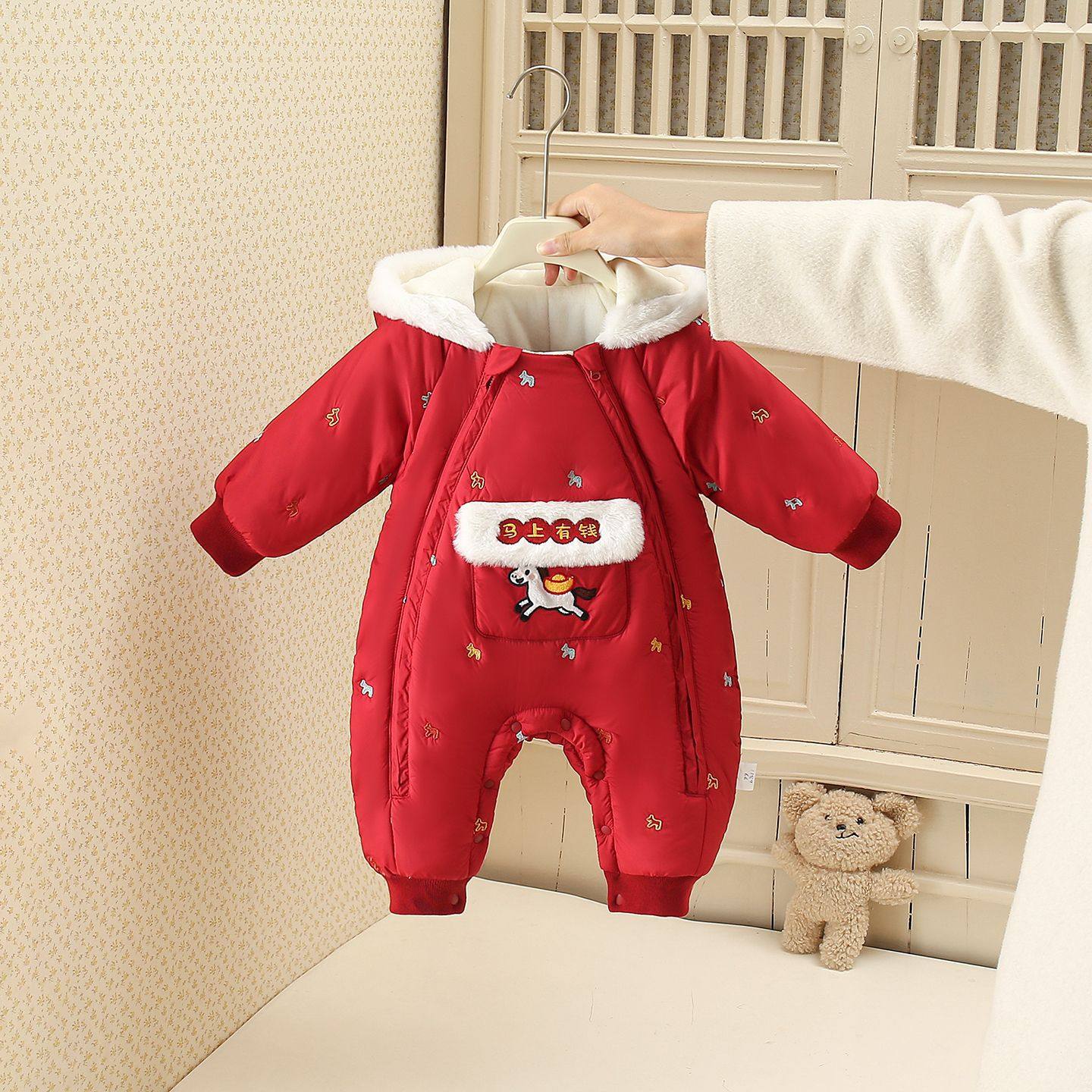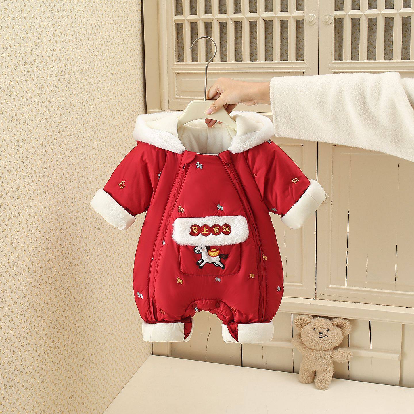 英国NEXT婴儿拜年服连体衣冬季加厚夹棉爬服宝宝外出抱衣新年衣服