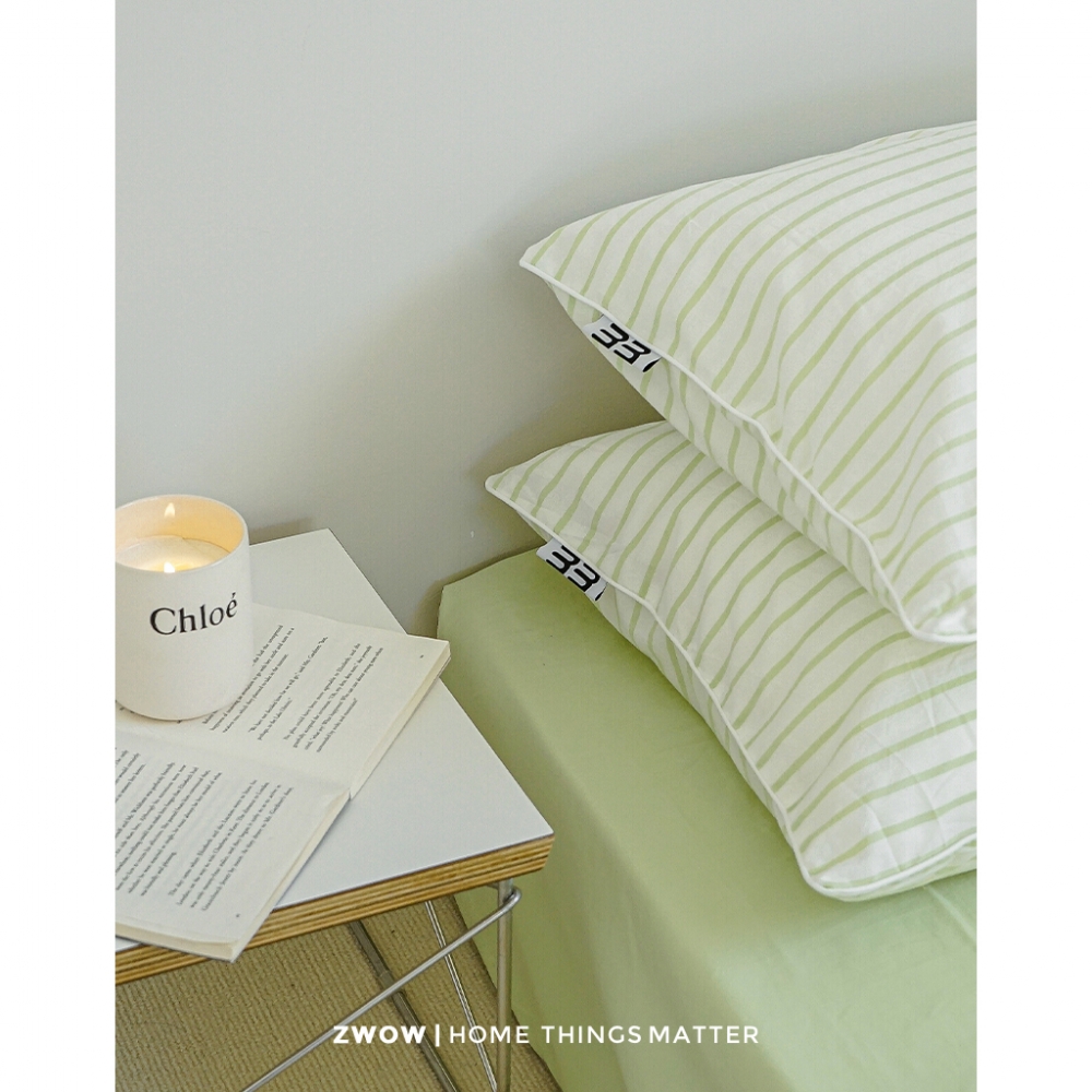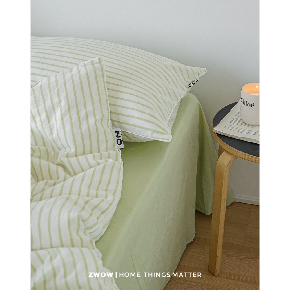 造卧zwow春秋小清新薄荷曼波绿色条纹水洗纯棉全棉床上床单四件套