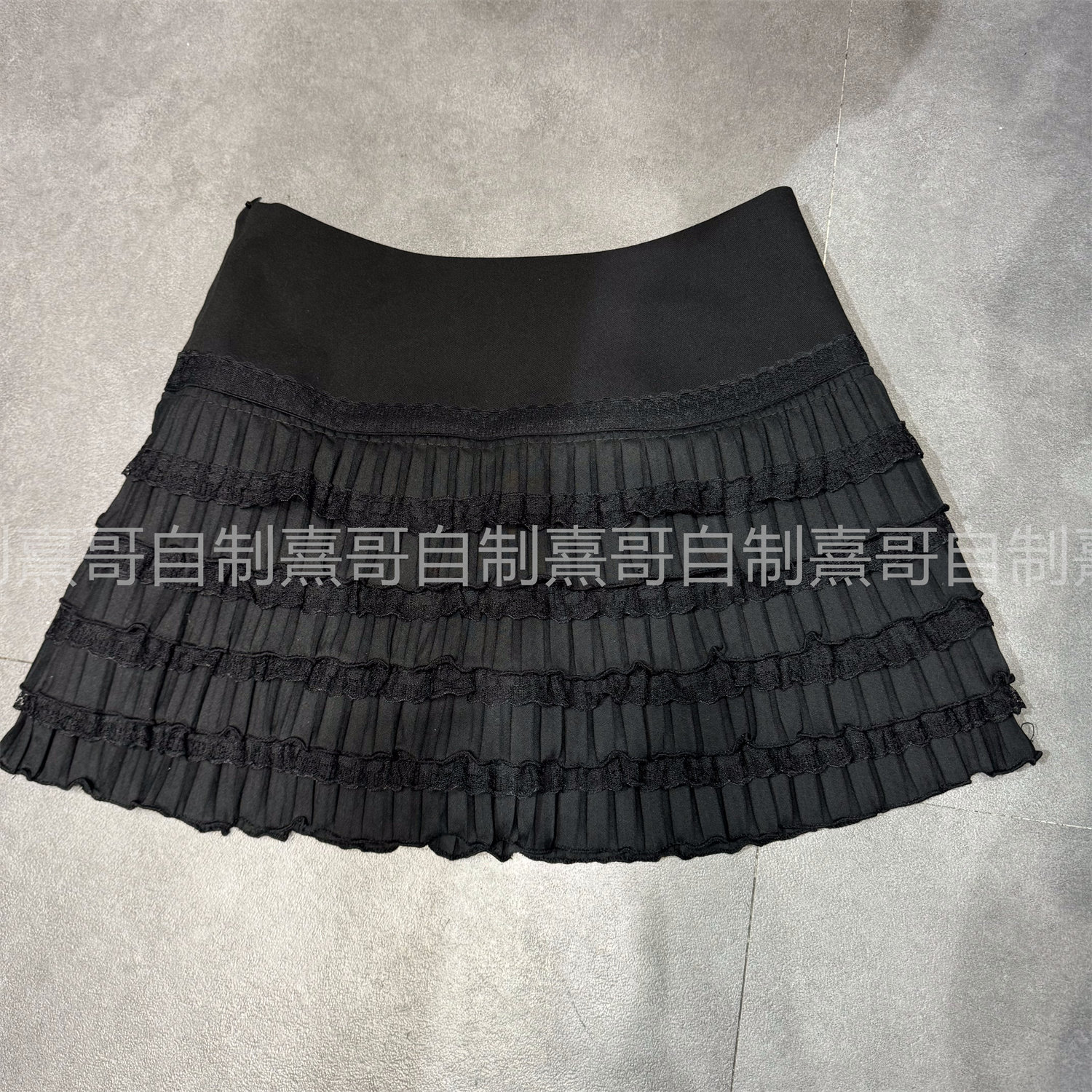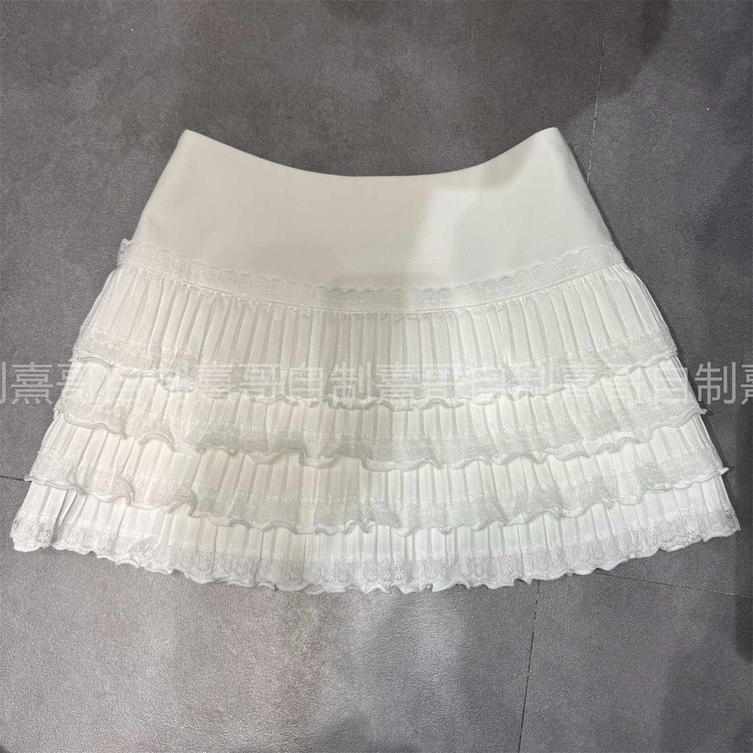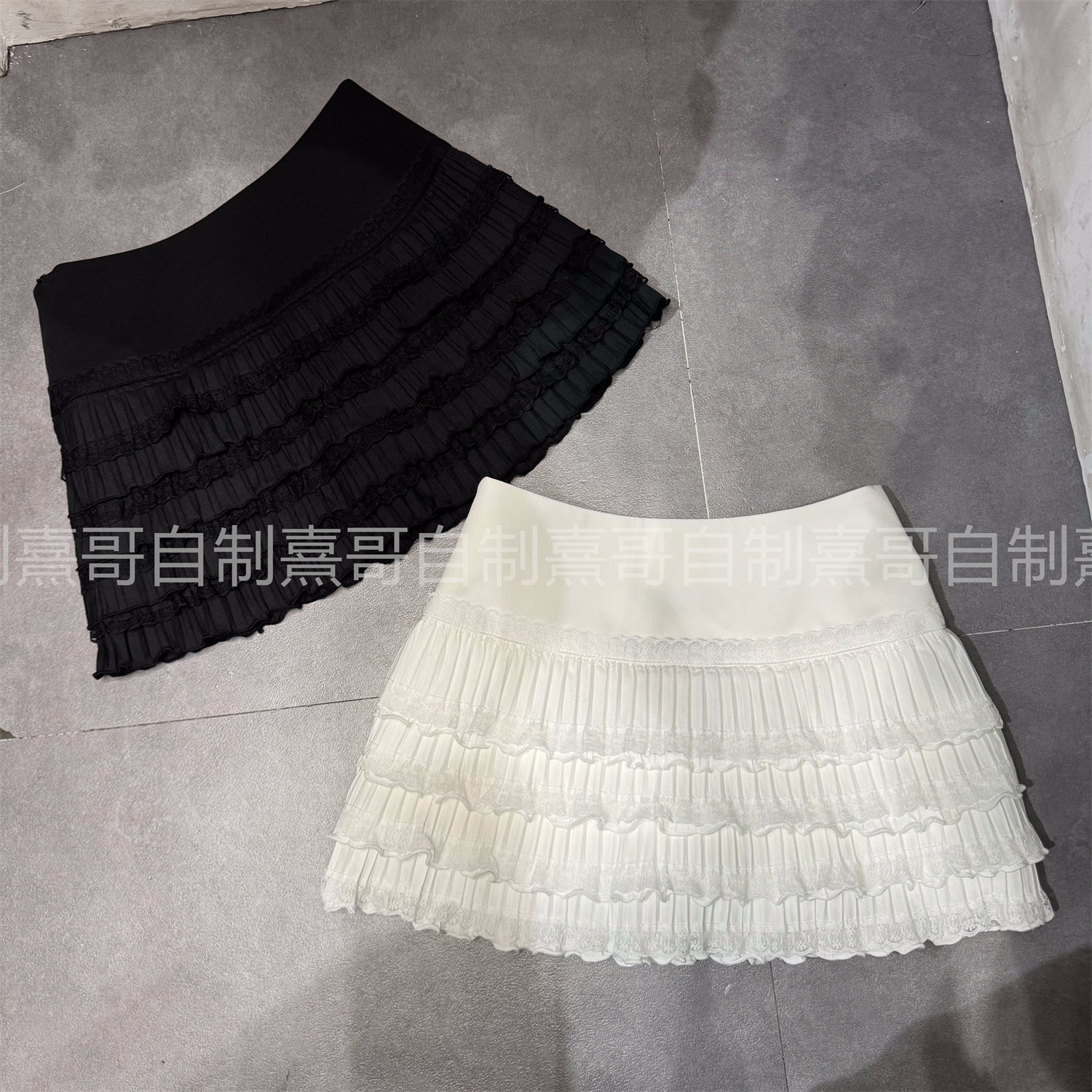春季网红新款甜美辣妹蕾丝褶皱裙摆边纯色蛋糕裙半身裙百褶A字裙