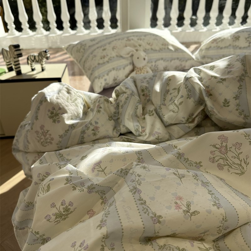 田园淡雅碎花少女心床上四件套1.5m1.8米全棉被套床单三件套