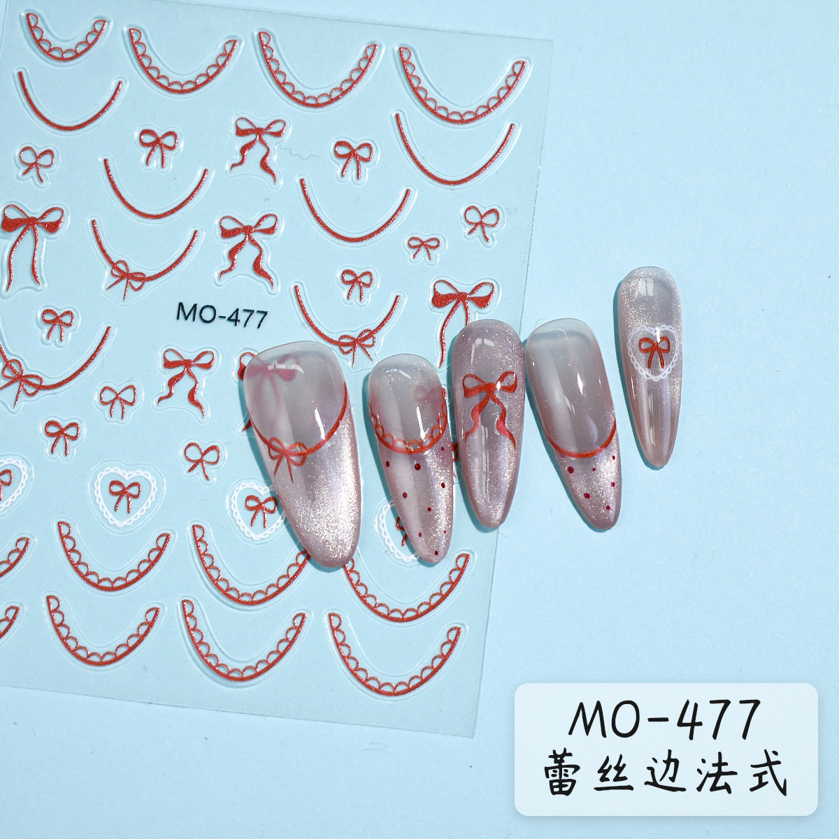 蕾丝边法式美甲贴纸2025新款芭蕾风黑白红色蝴蝶结指甲贴网红爆款