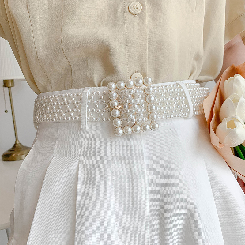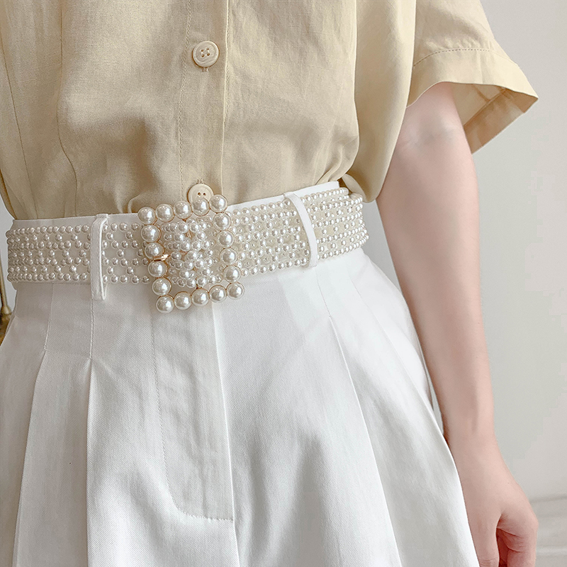 腰封女士 珍珠时尚新款简约宽款搭配连衣裙大衣时尚ins风百搭腰带