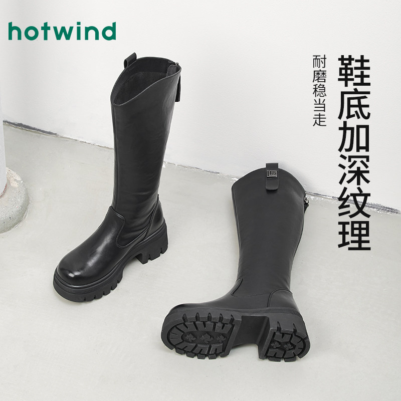 热风厚底长筒靴2025年冬季新款复古美拉德骑士靴棕色增高靴子女鞋