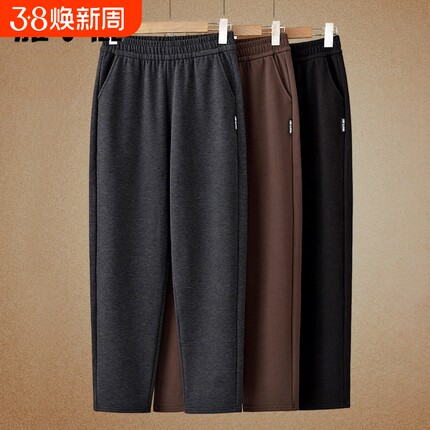 雅鹿妈妈裤子春秋休闲直筒裤中老年女裤奶奶新款冬季加绒加厚卫裤