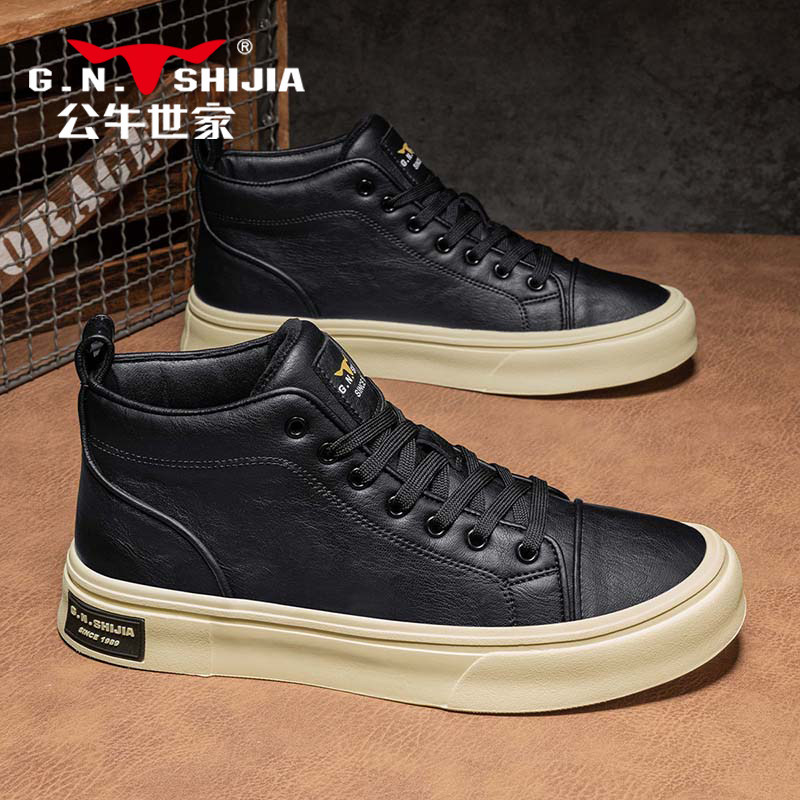 公牛世家男鞋冬季2025新款韩版潮流百搭皮鞋运动休闲高帮板鞋潮鞋