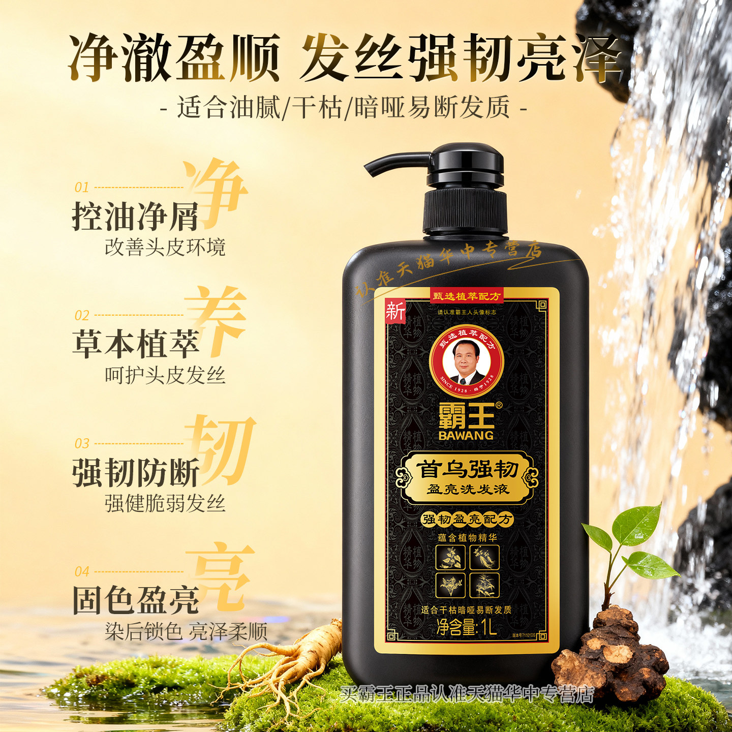 霸王首乌固发洗发水露防脱固发草本非去屑止痒蓬松官方正品1L