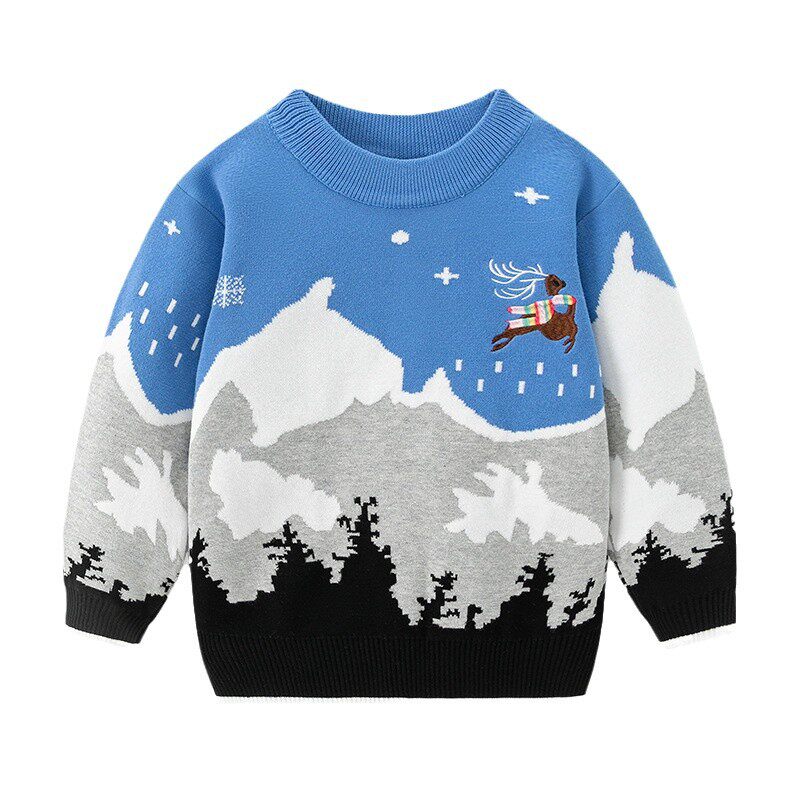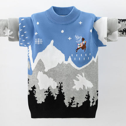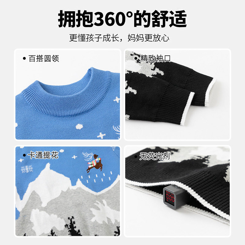 跨境外贸圣诞节儿童毛衣卡通雪橇鹿套头长袖秋冬装保暖新款上衣潮