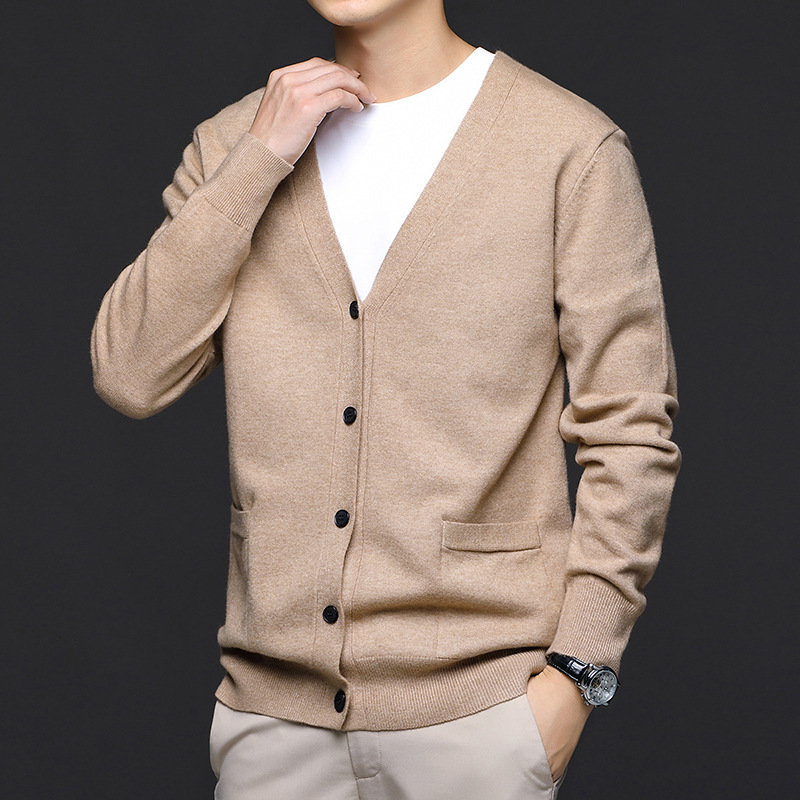 秋季新款针织开衫男韩版青年时尚休闲单排扣修身大V领毛衣外套男