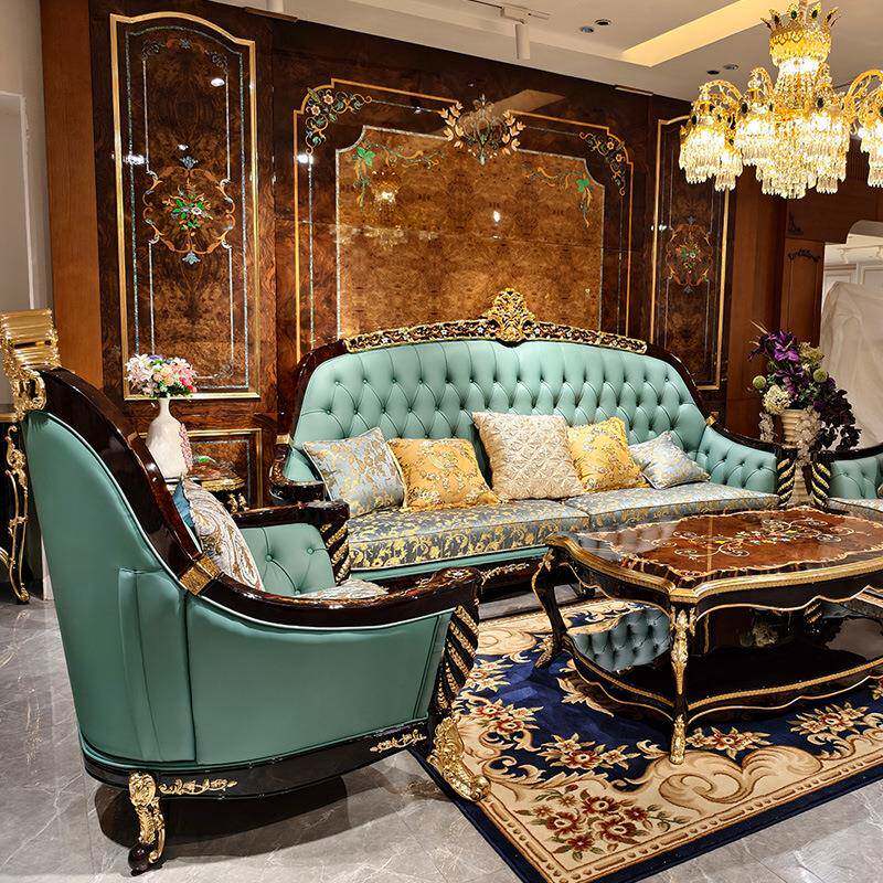 美式实木高沙发组30152合端奢华欧式雕花皮艺沙客厅大发型户新古