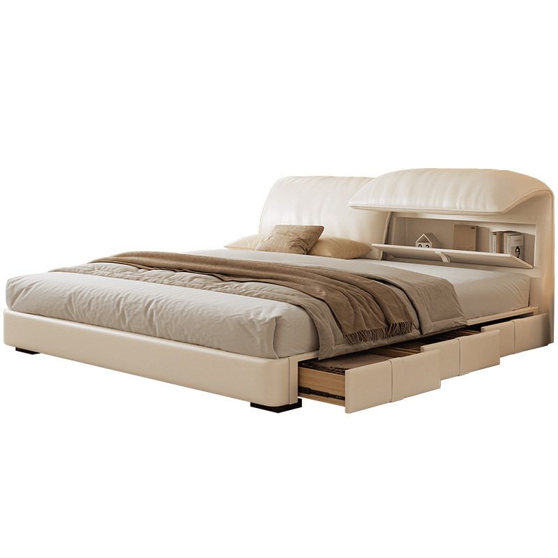 吉与大象耳朵真皮床简约现代储物高箱带抽屉小户型床头置物主卧床