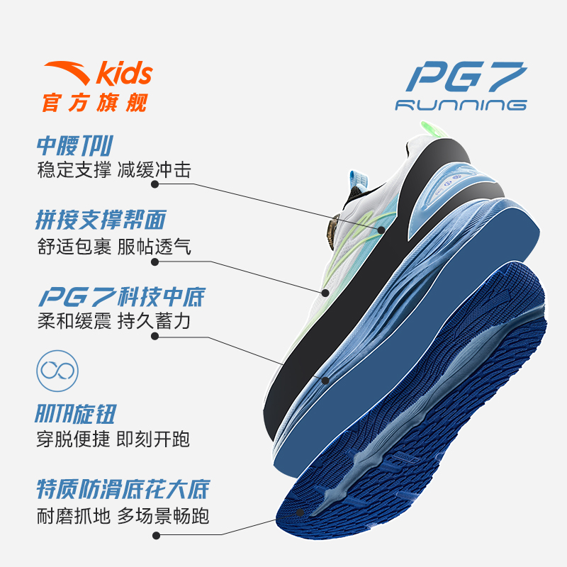 安踏儿童鞋2025夏款男大童旋钮网面透气PG7凌云运动跑步鞋中大童