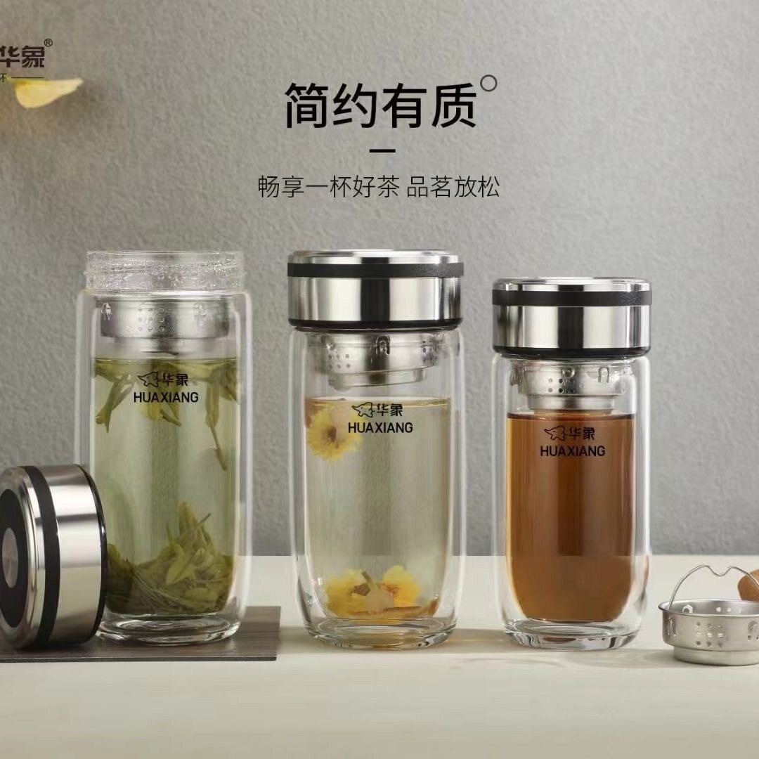 华象正品高硼硅双层加厚车载商务办公水晶鹅蛋玻璃杯团购定制logo