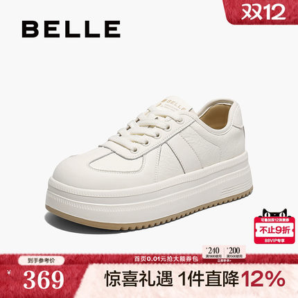 百丽女鞋子厚底小白鞋25春季新款休闲增高系带运动板鞋B2529AM5