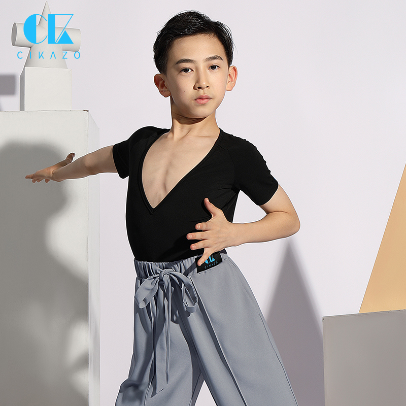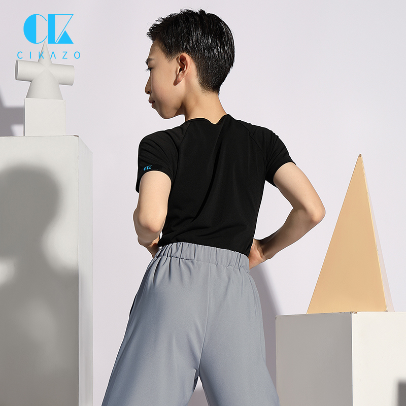 茜卡索 拉丁舞服男童练功服上衣夏季男孩新款舞蹈训练服t恤G5055